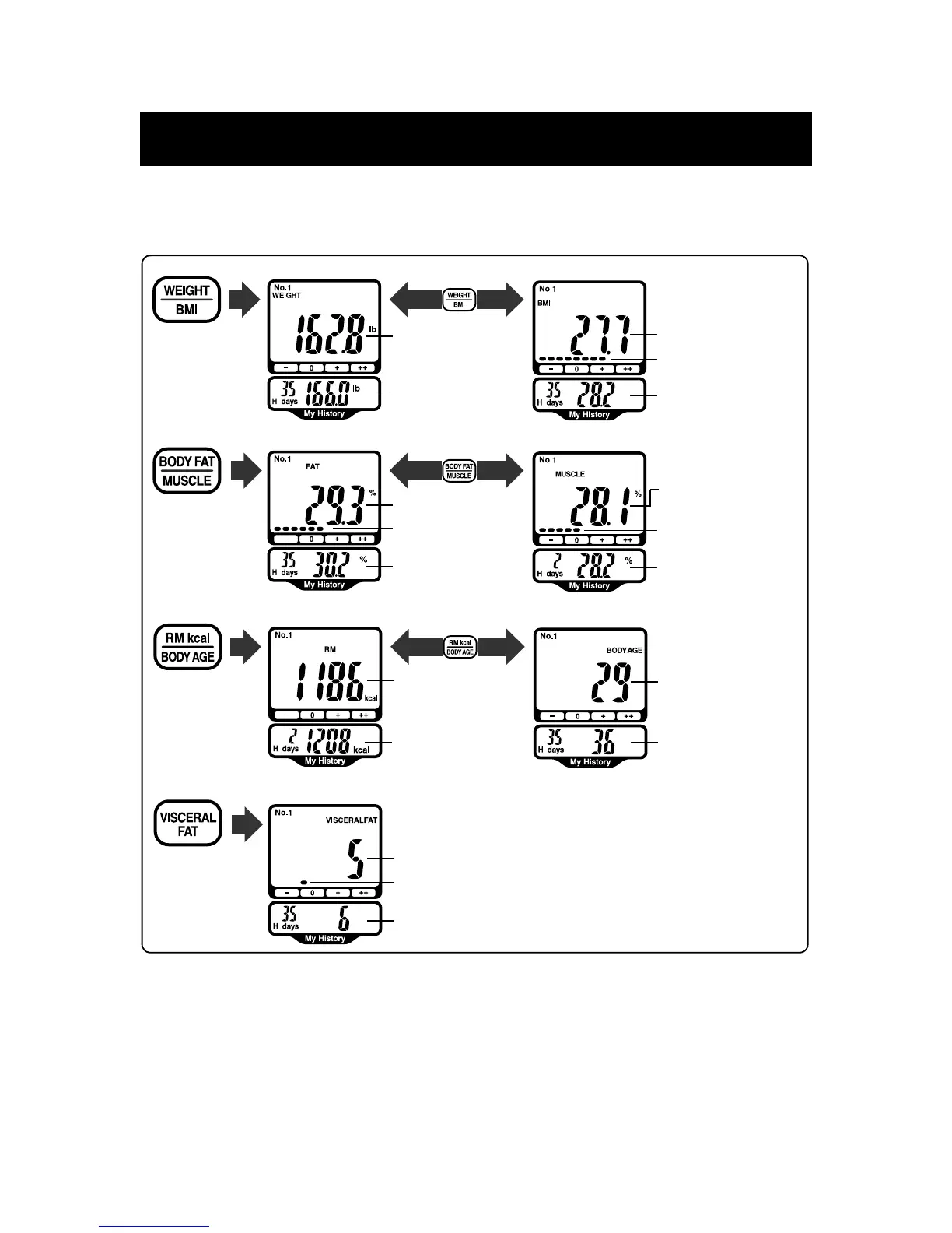 •The age range for the skeletal muscle percentage, resting metabolism, body age and visceral fat