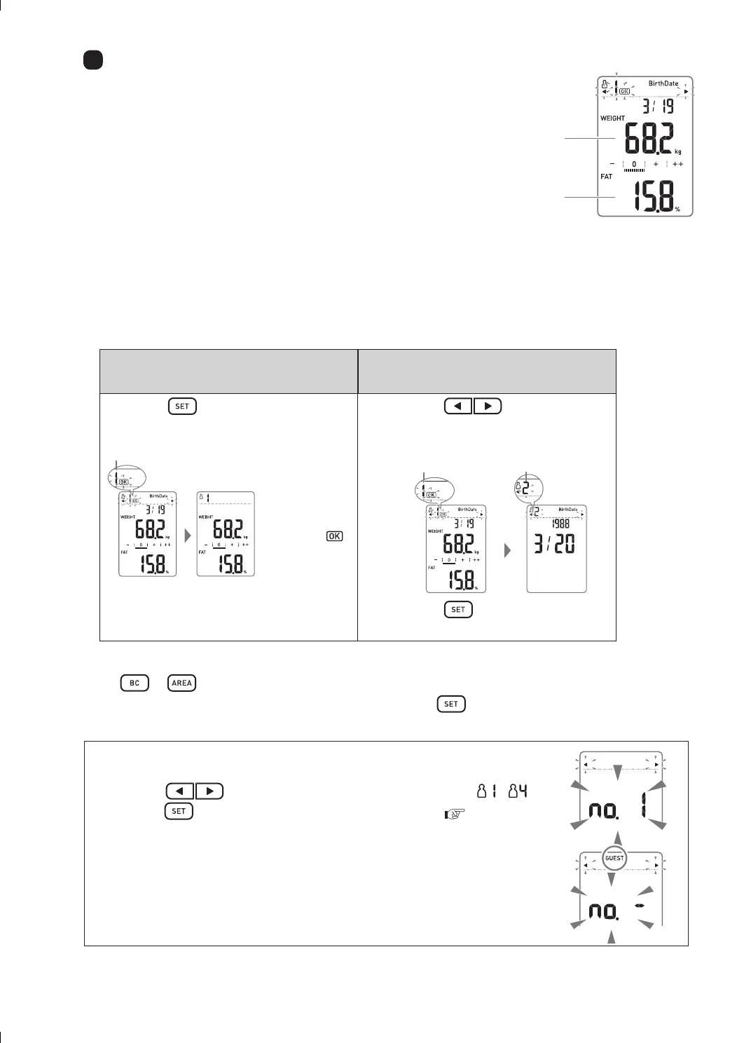 This product will infer the personal number automatically from weight and body composition. However,