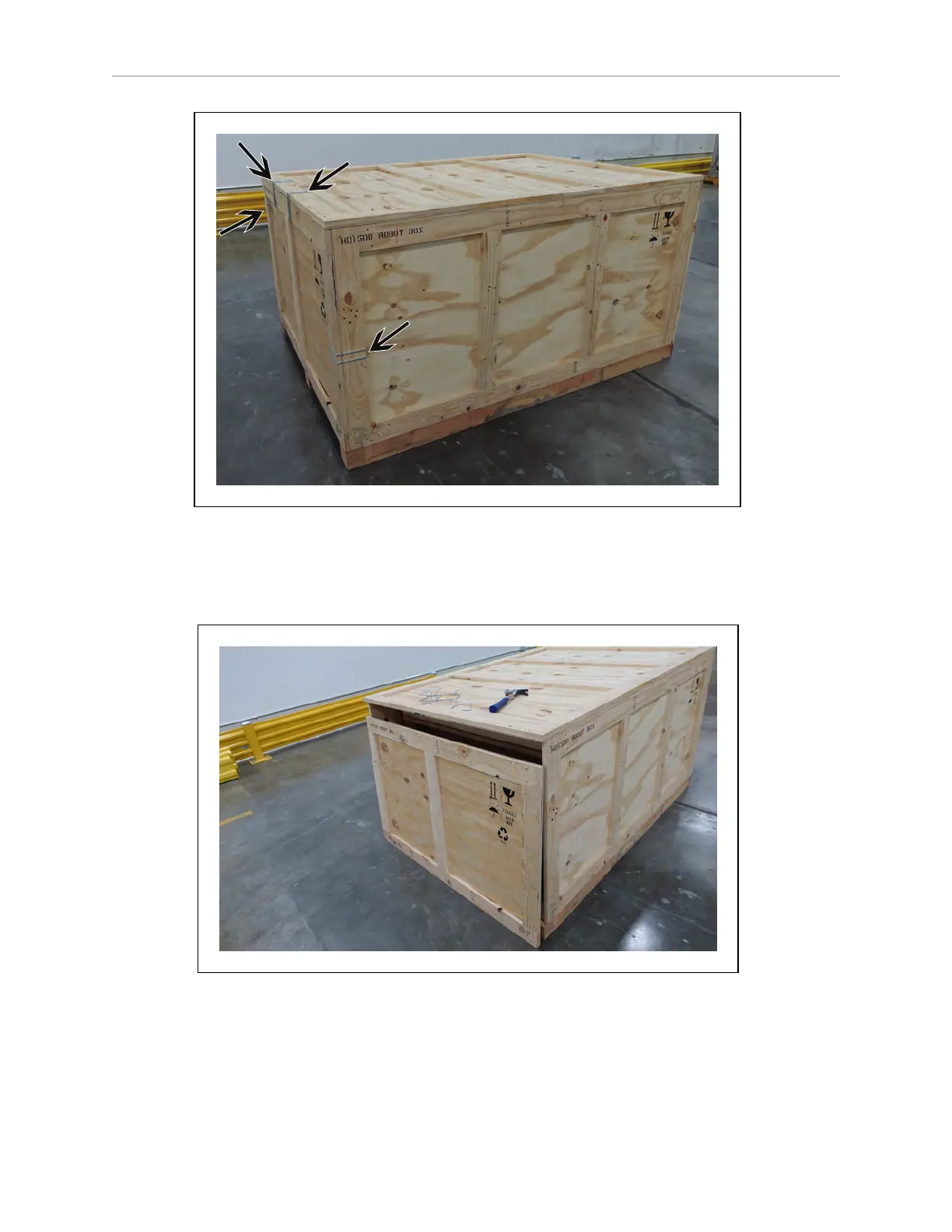 Pull the front panel and detach it from the crate. The front panel should come off with