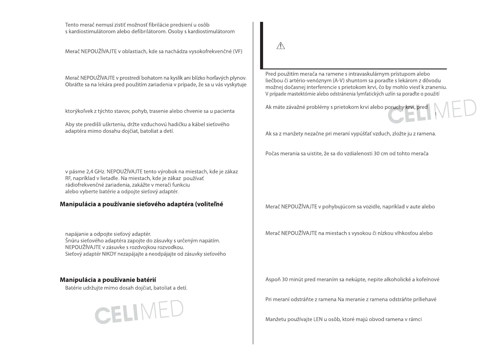 t Tento merač NEPOUŽÍVAJTE na žiadne iné účely než na meranie tlaku krvi a/alebo