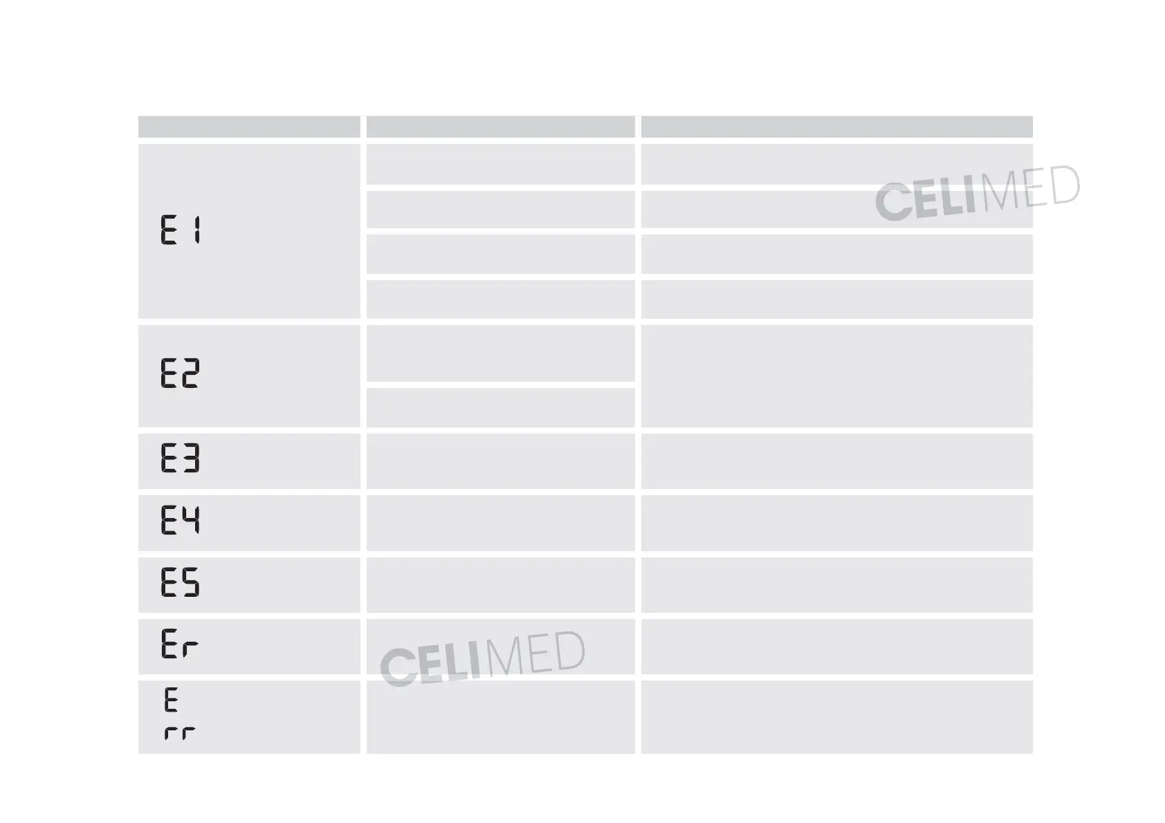 Med izvajanjem meritve mirujte in ne govorite. Če se »E2«