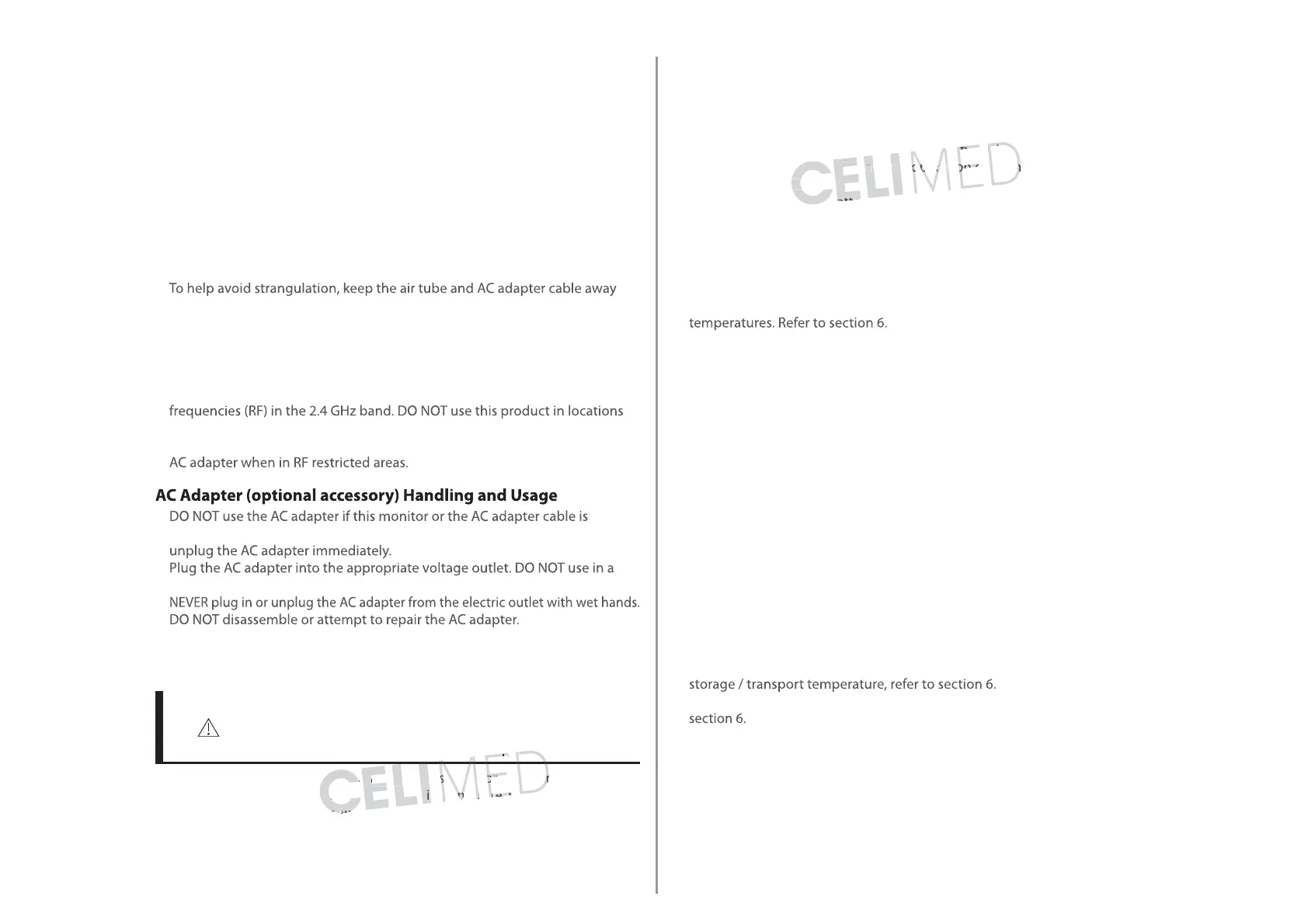 t DO NOT use this monitor in oxygen rich environments or near ammable gas.