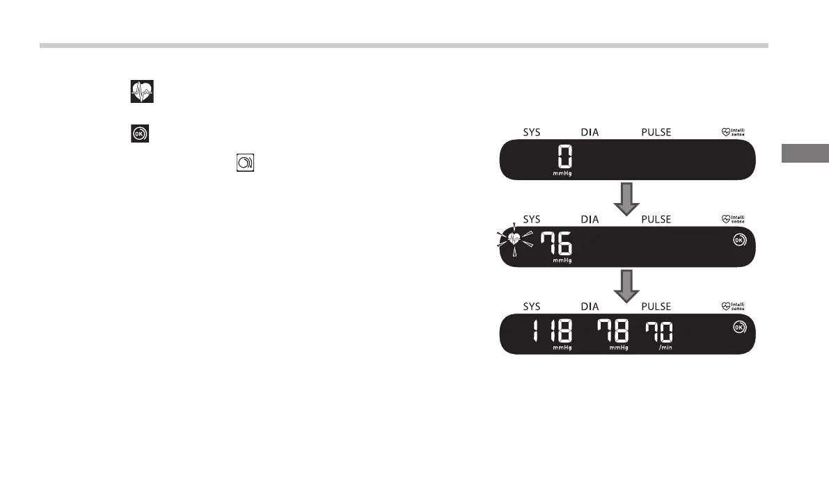 • El símbolo “ ” aparece si el brazalete está colocado correctamente