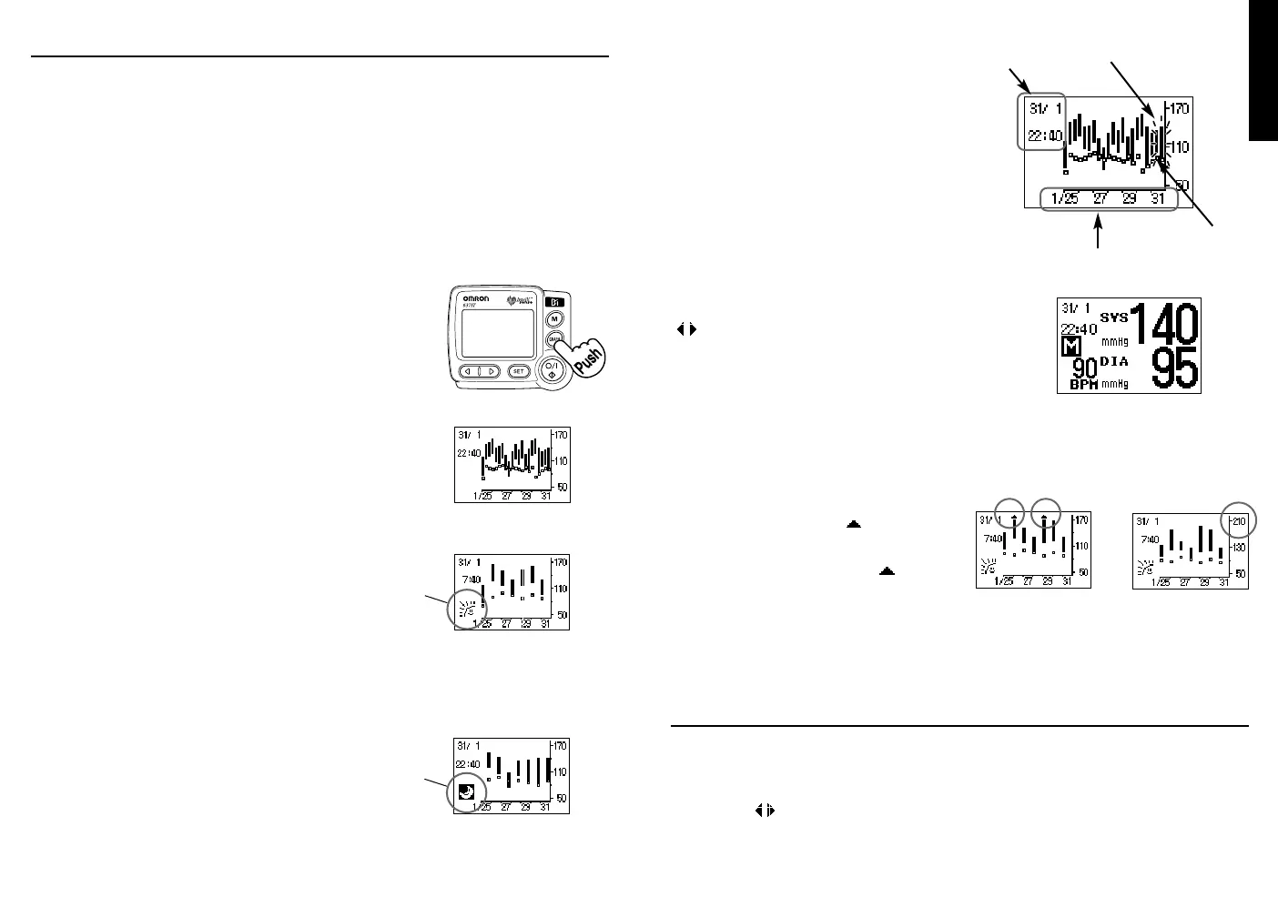 This monitor has the possibility to display the stored measurements as a graph. In order to get a clear