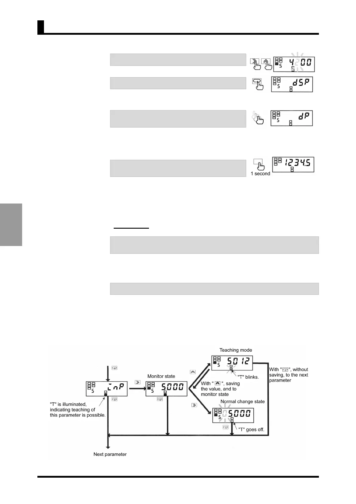 • "T" will starts blinking, indicating the product is in teaching mode.