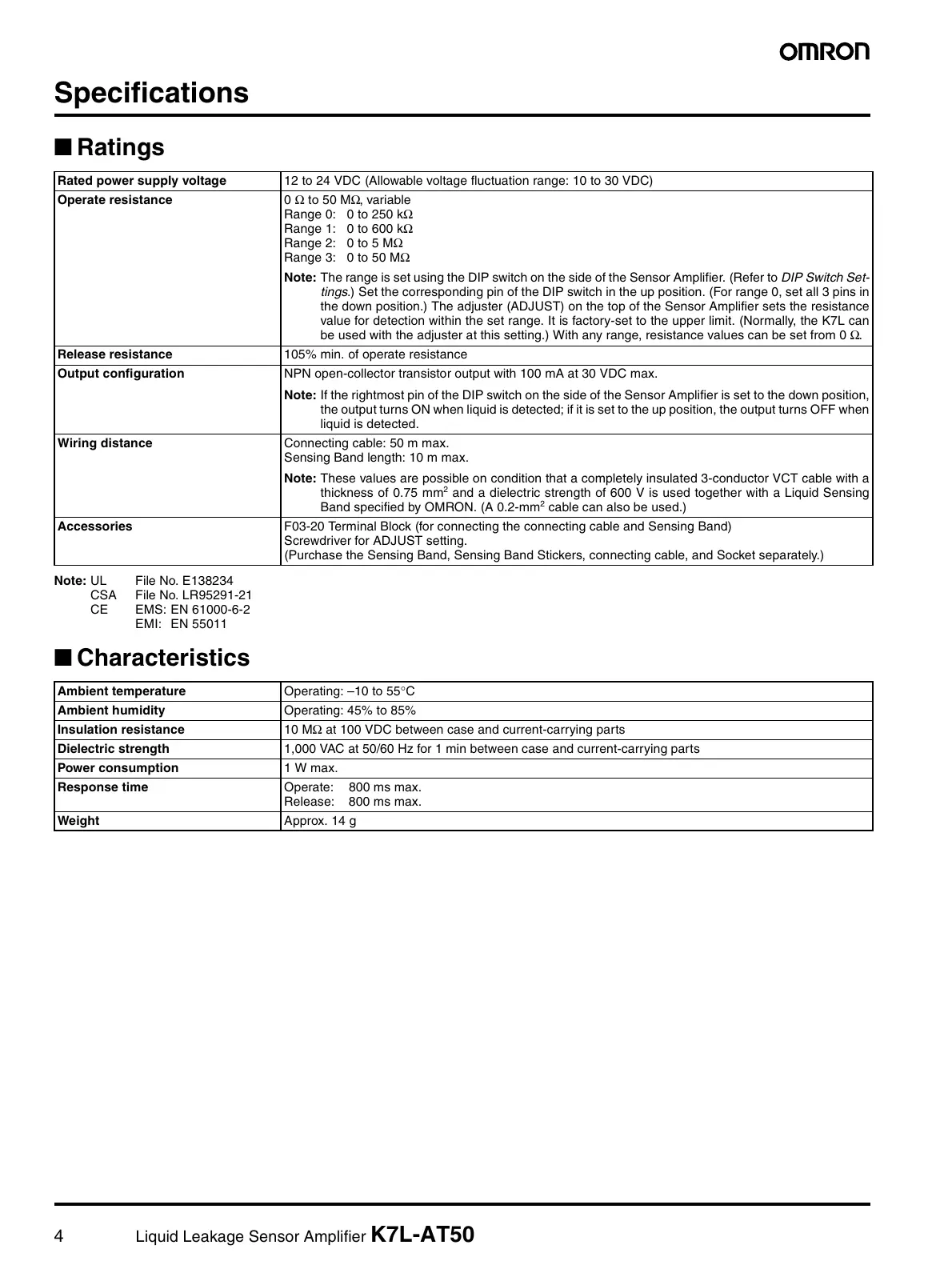 4 Liquid Leakage Sensor Amplifier K7L-AT50
