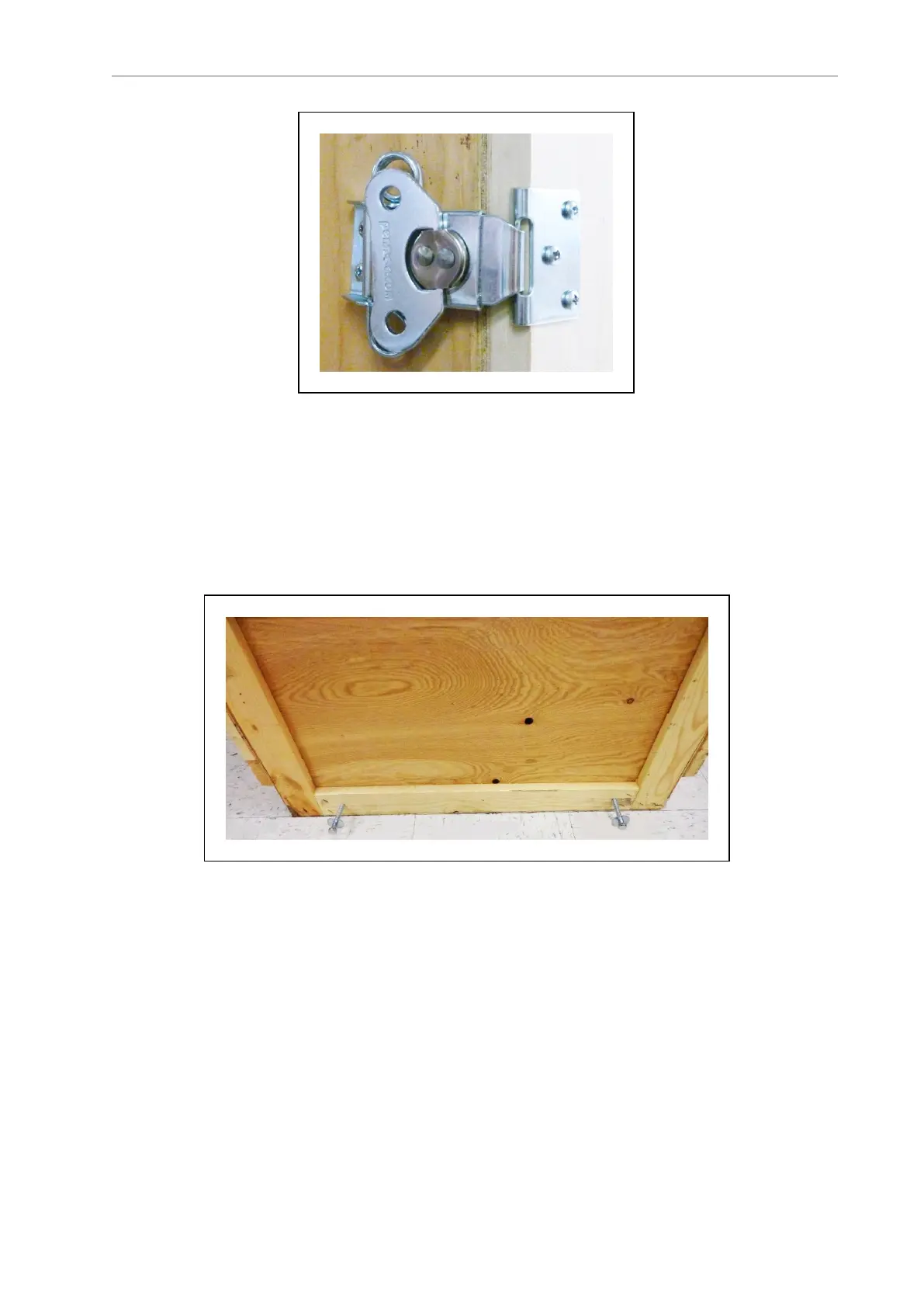 There are six lag bolts and washers around the base of the crate, two in the rear and