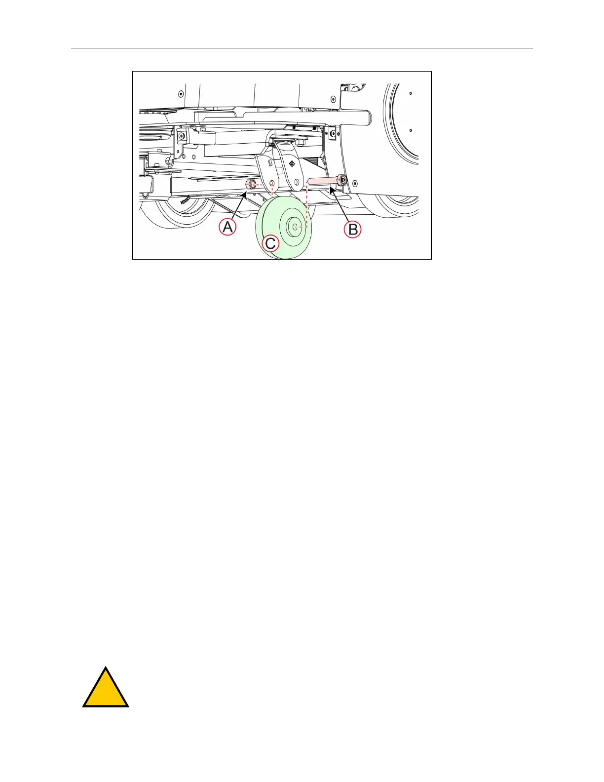 Slide out the axle (B) to remove the caster (C).