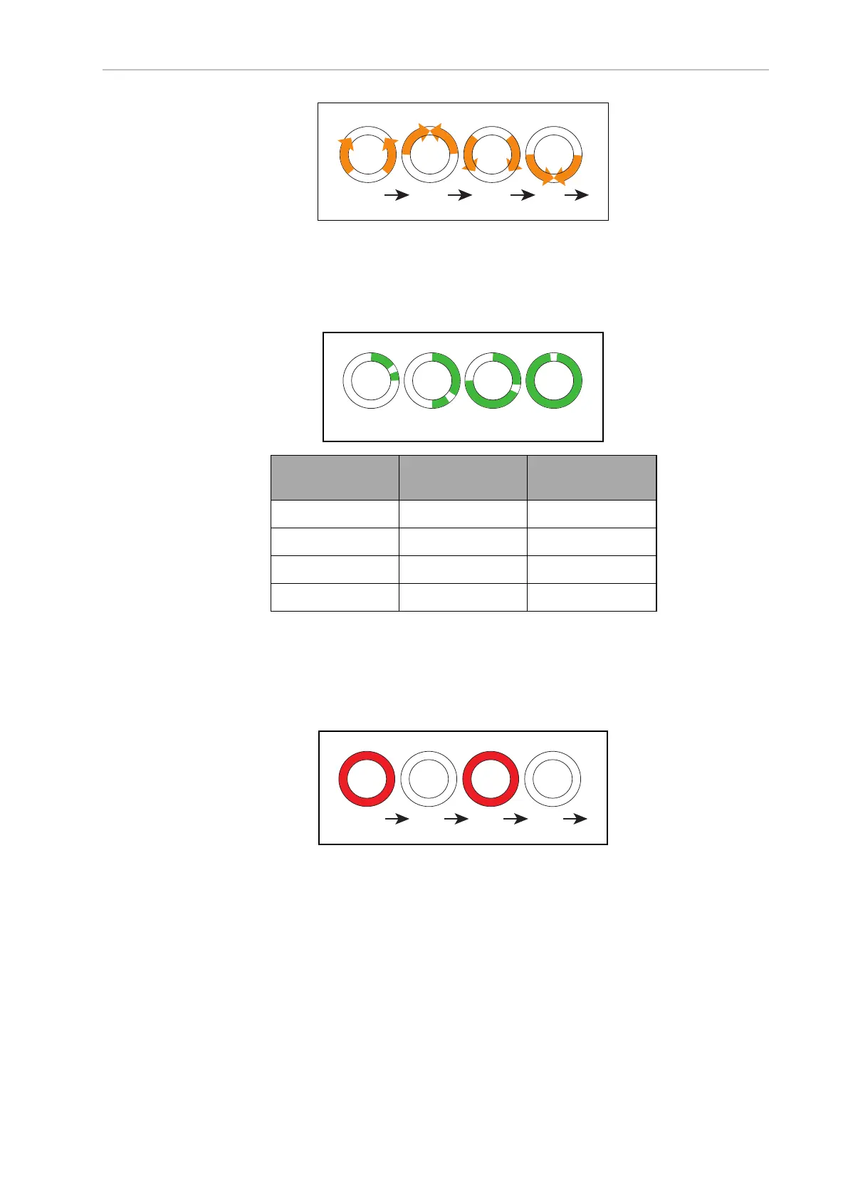 o'clock position and back, in opposite directions. Beacon alternates green, yellow, then red.