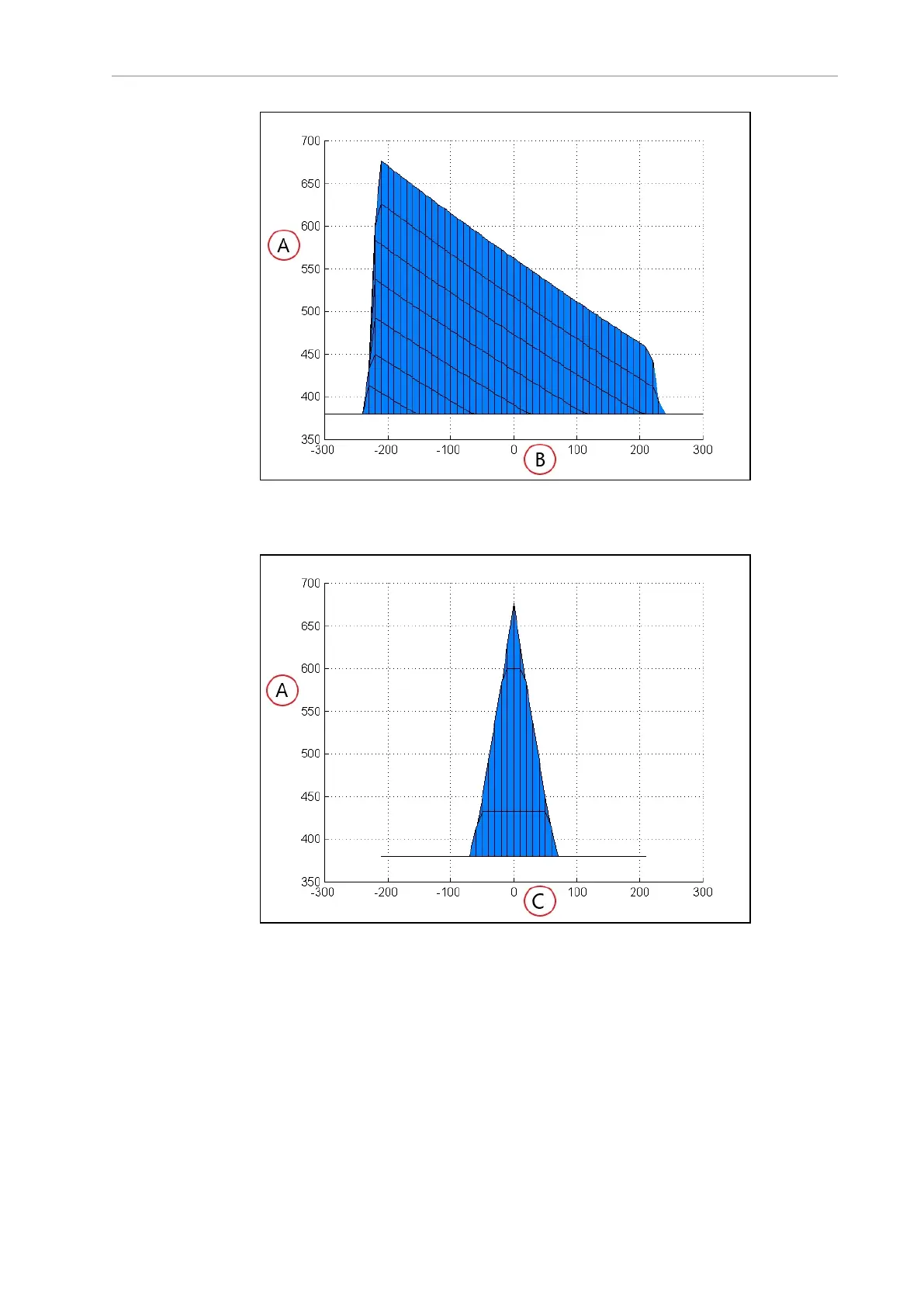 Figure 5-11. Transverse View, 90 kg, (A) Vertical Direction, (C) Transverse Direction (units in mm)