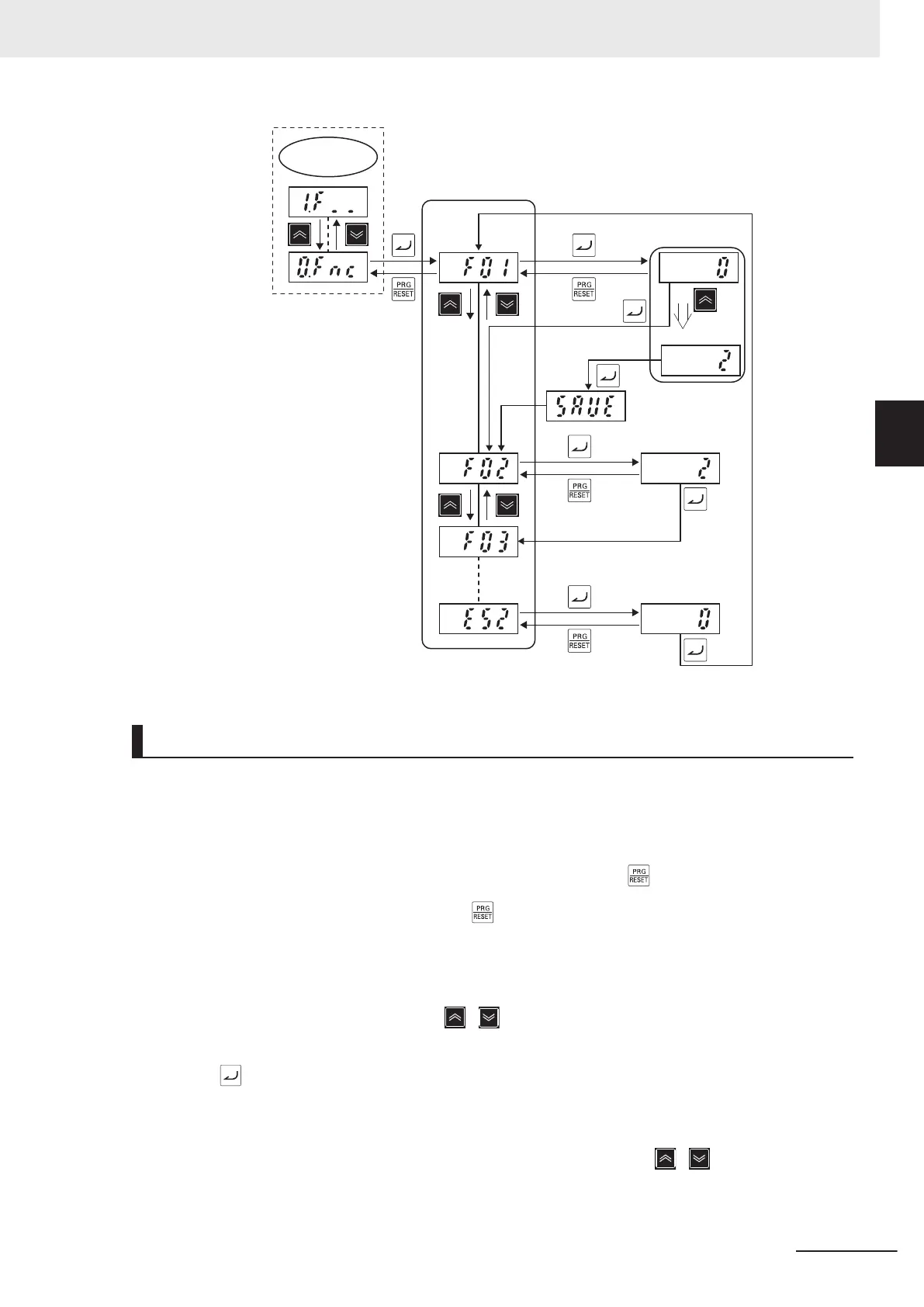 To clear the alarm, remove the cause of the alarm and then press the key. The inverter returns to