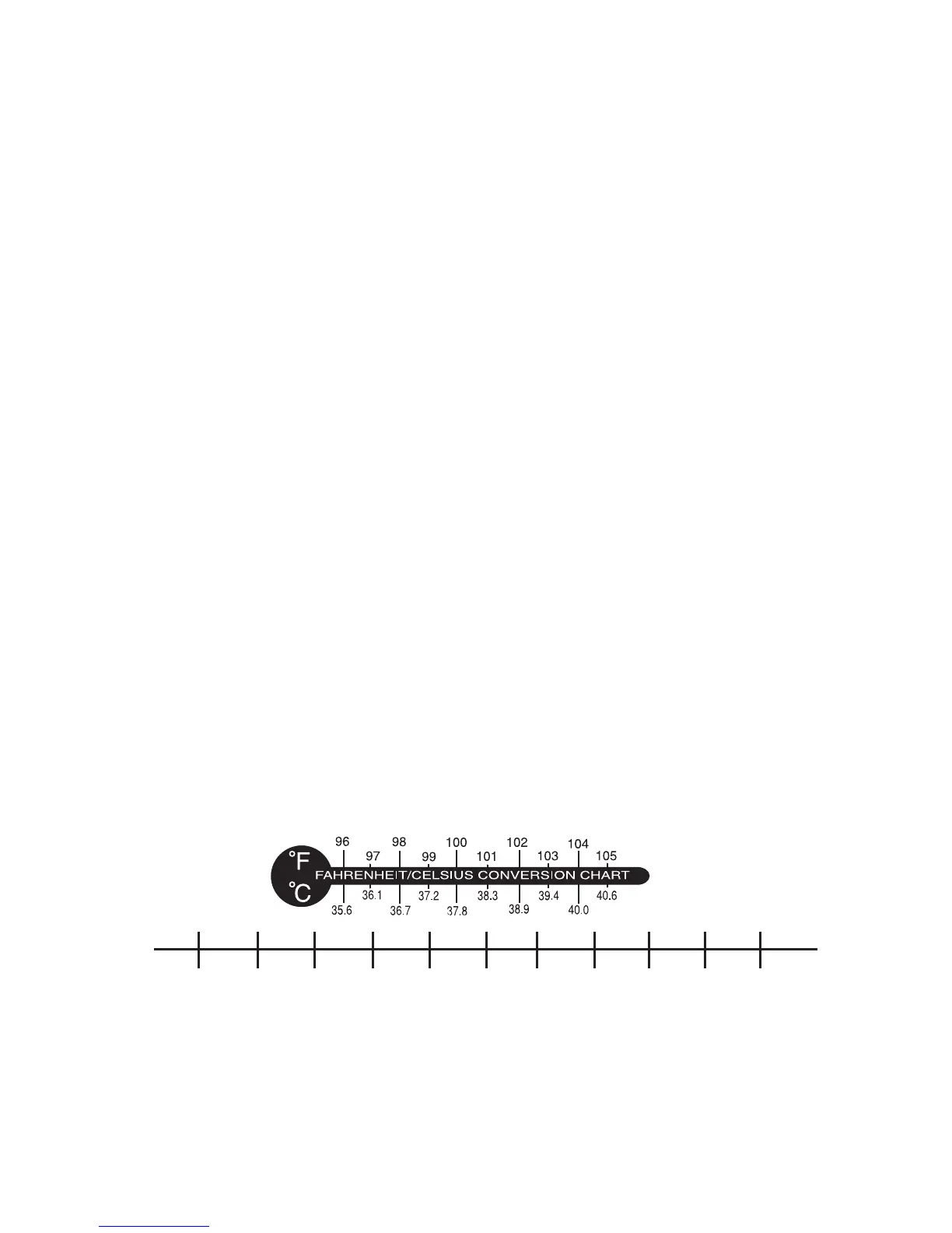 Refer to the chart below for Fahrenheit/Celsius conversions.
