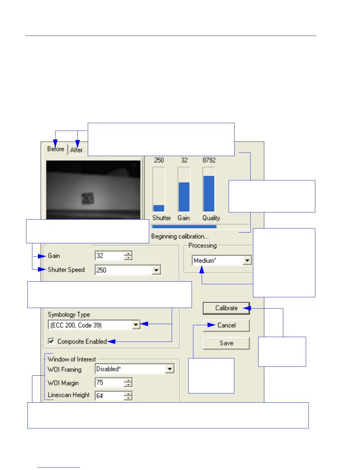 The Window of Interest section of the Calibration interface allows the user to make precise adjustments