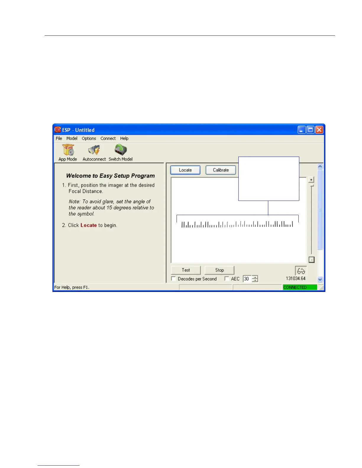 For optimal decode results, position the symbol as close to the center of the reader’s field