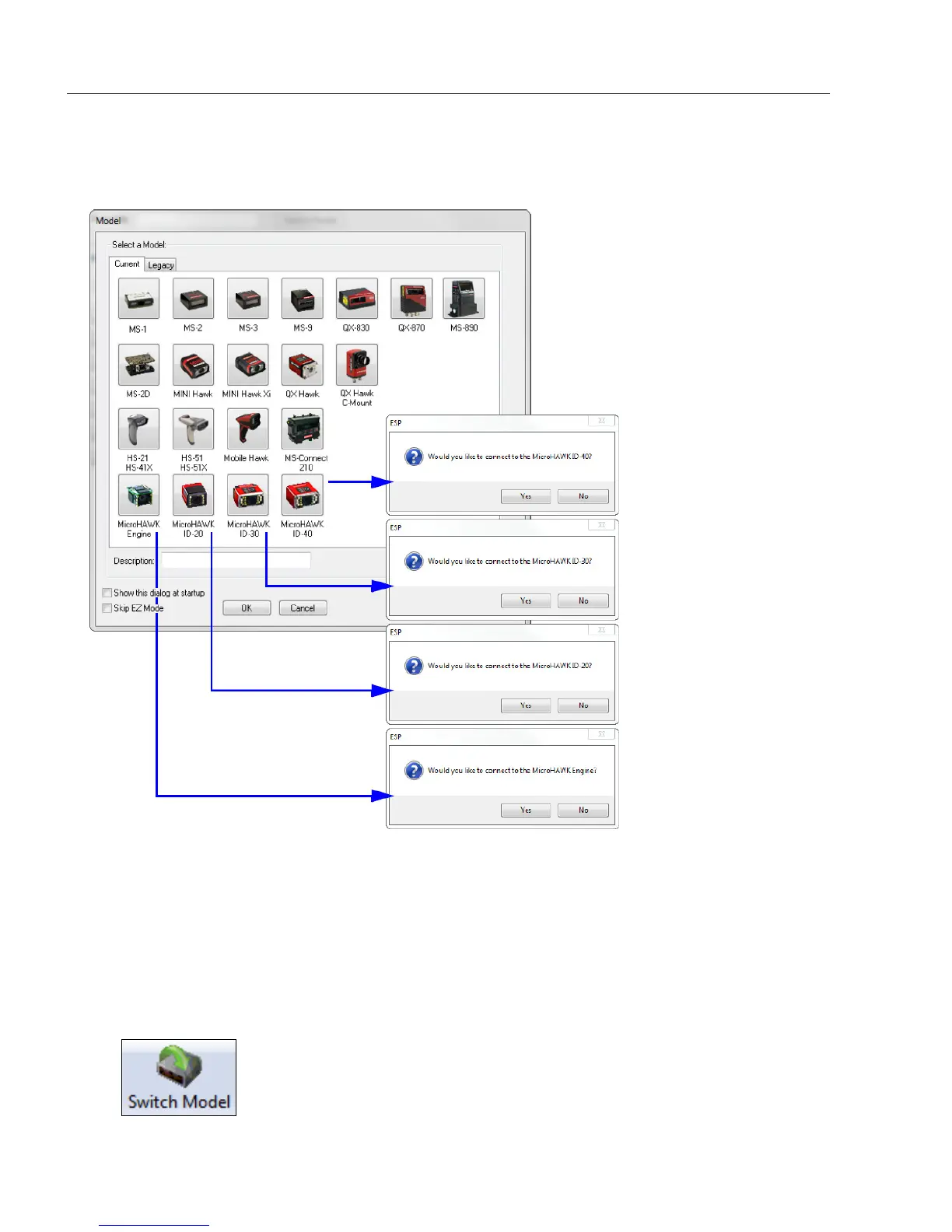 Would you like to connect to the MicroHAWK Engine-[XX]? dialog after selecting