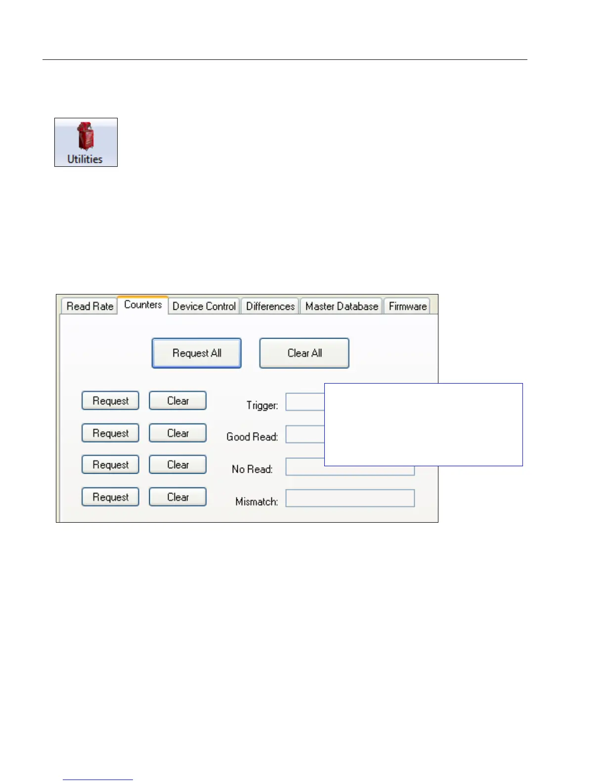 Click the Request button to display the appropriate count or Clear to set the counter to zero.