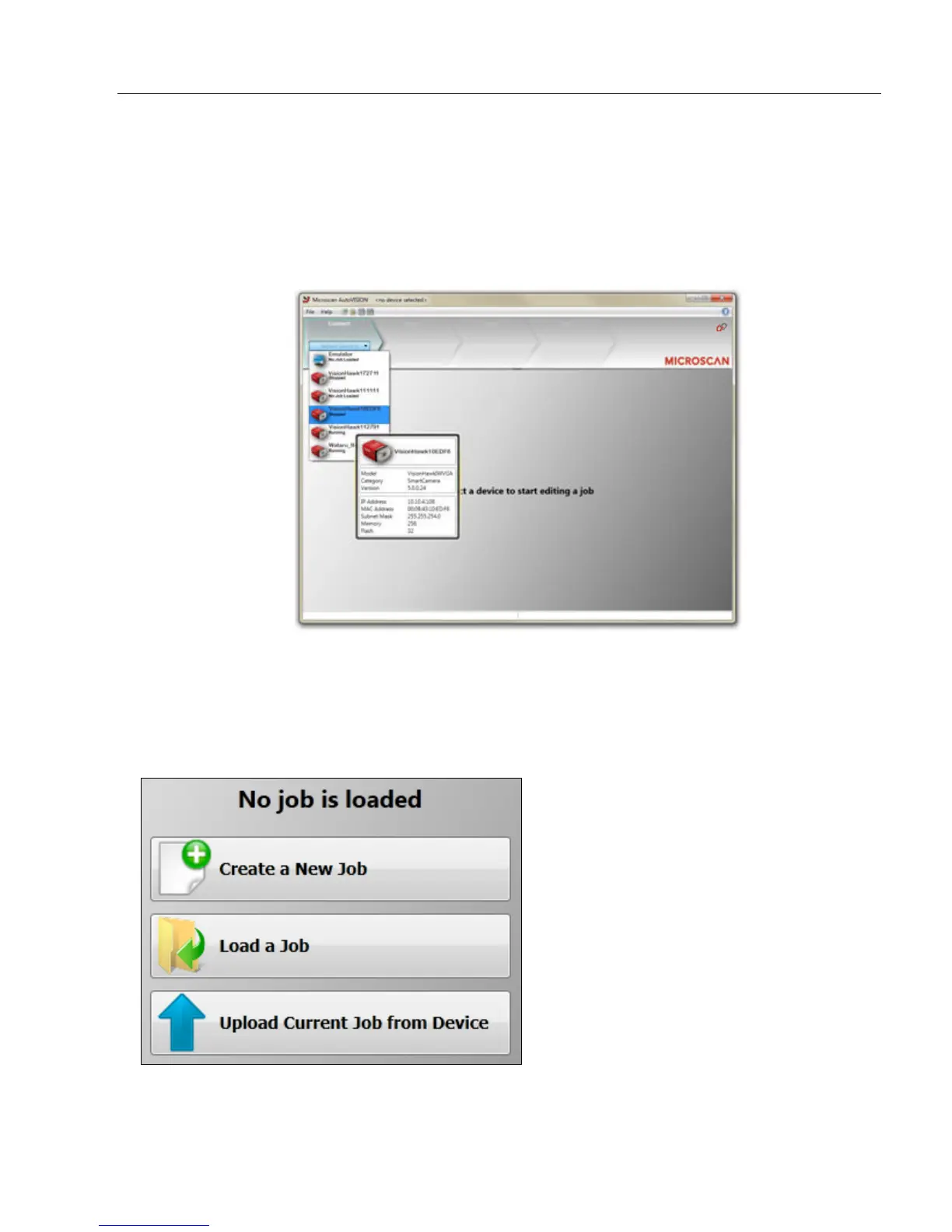 Once a device is selected, you can Create a New Job, Load a Job from a saved .avp file