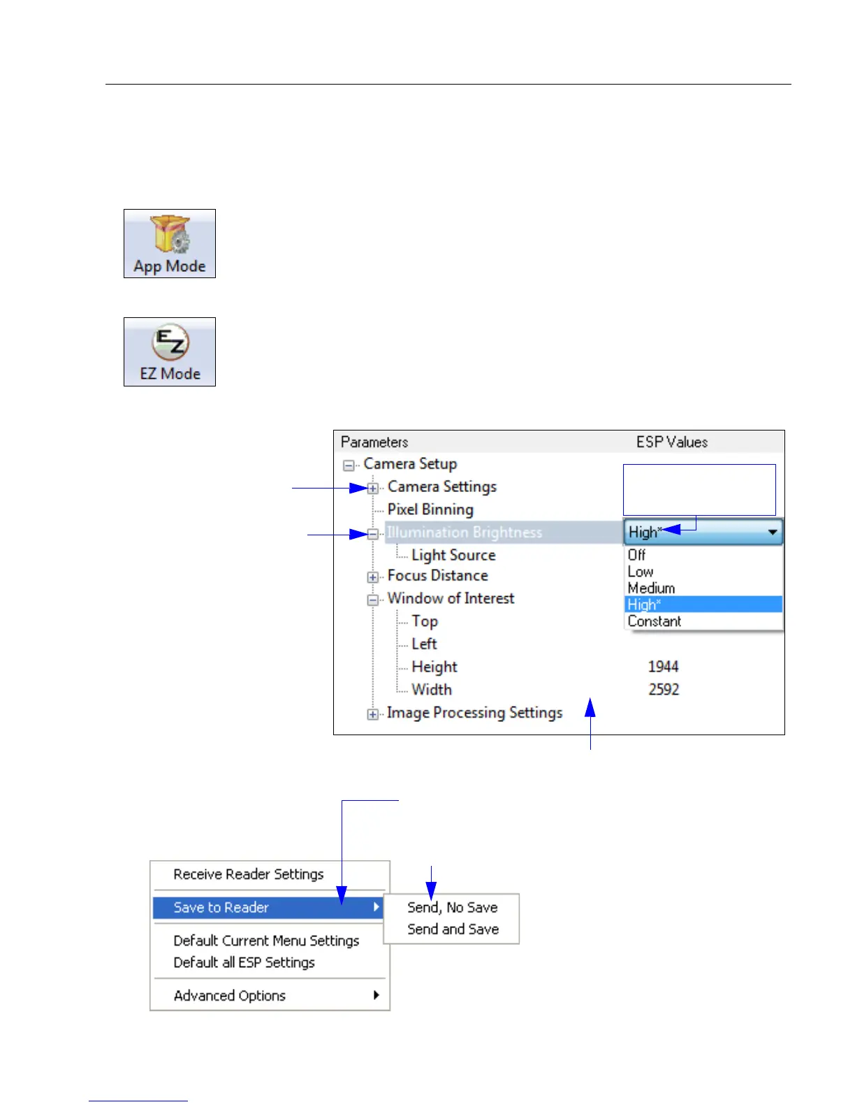 Click the App Mode button to change reader settings, or to access the Utilities, Camera,