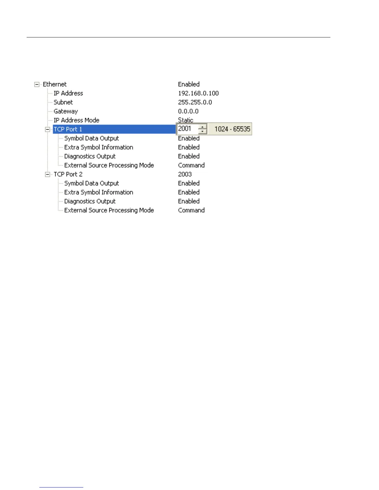 One of two TCP ports for Ethernet communication with the reader. The default setting is