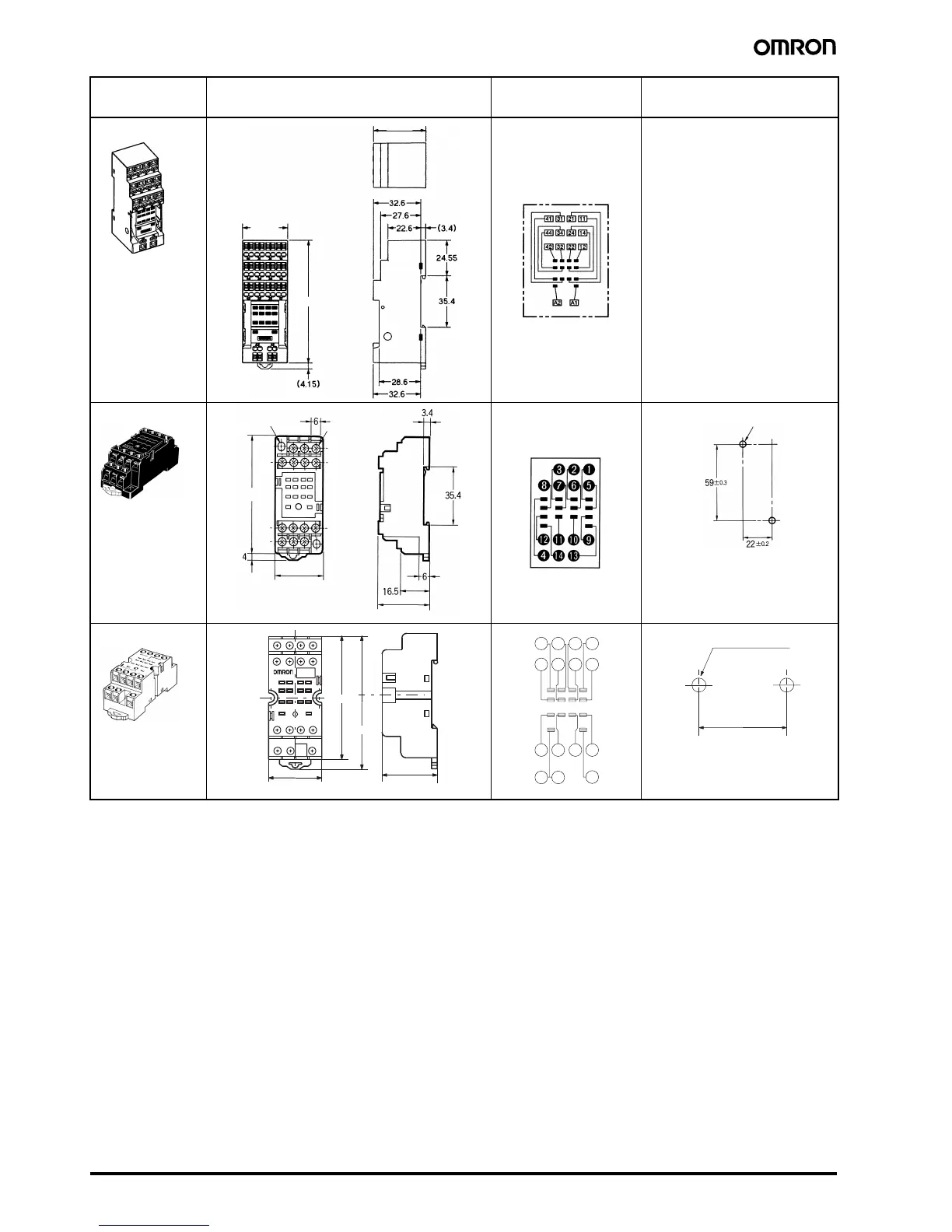 Socket Dimensions Terminal arrangement/