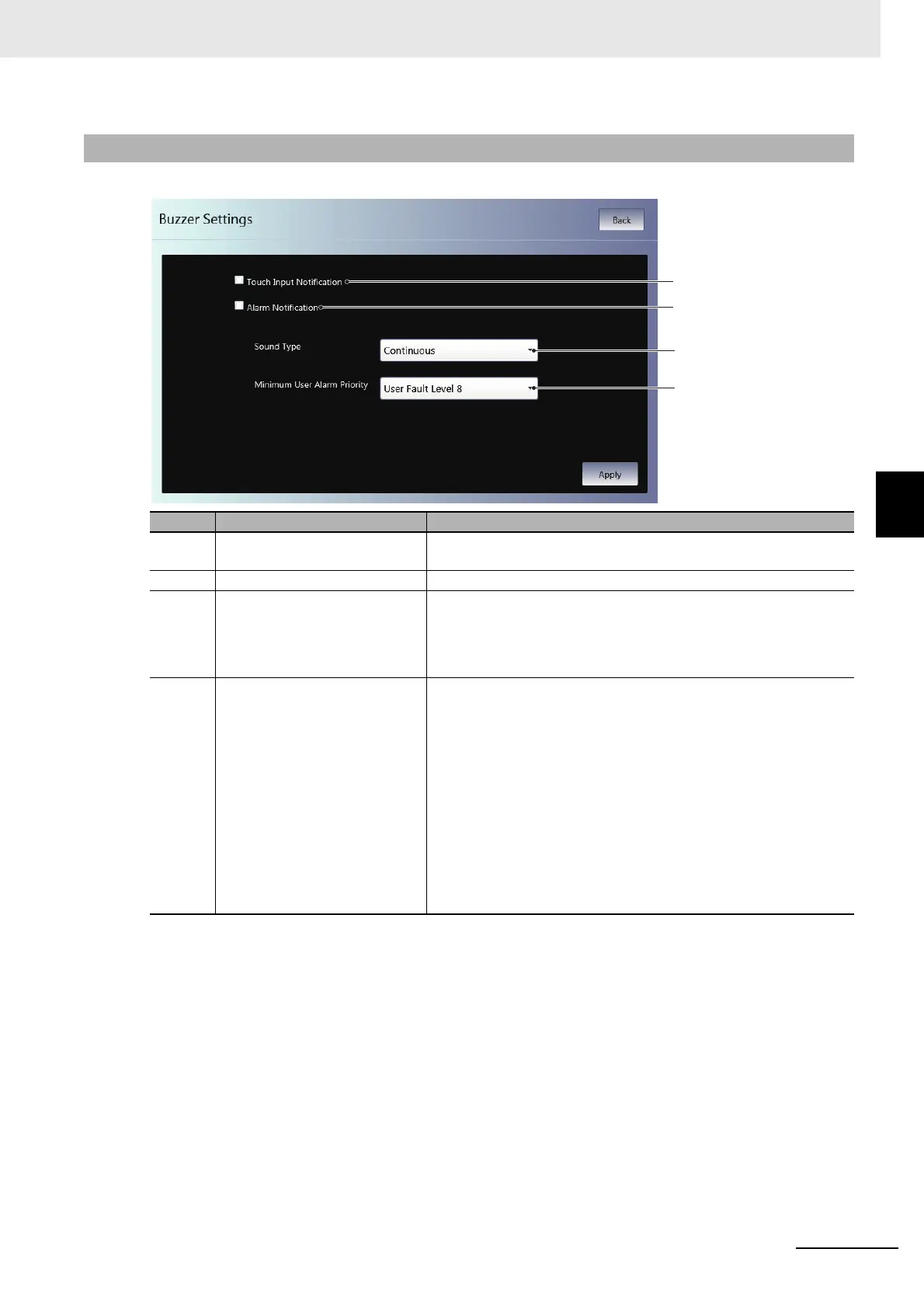 (d) Minimum User Alarm Priority Select the user fault level that sounds the buzzer from among the