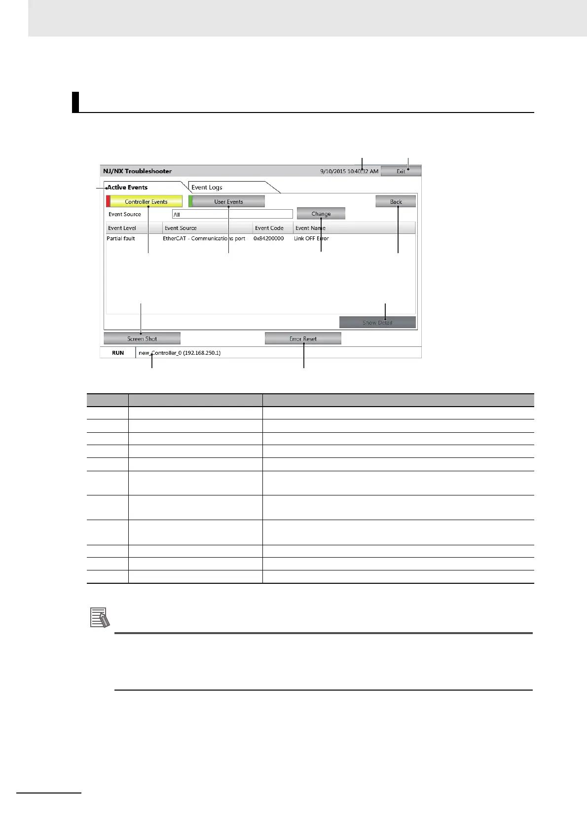 10 Error Reset Button Clears the events that are displayed on the screen.
