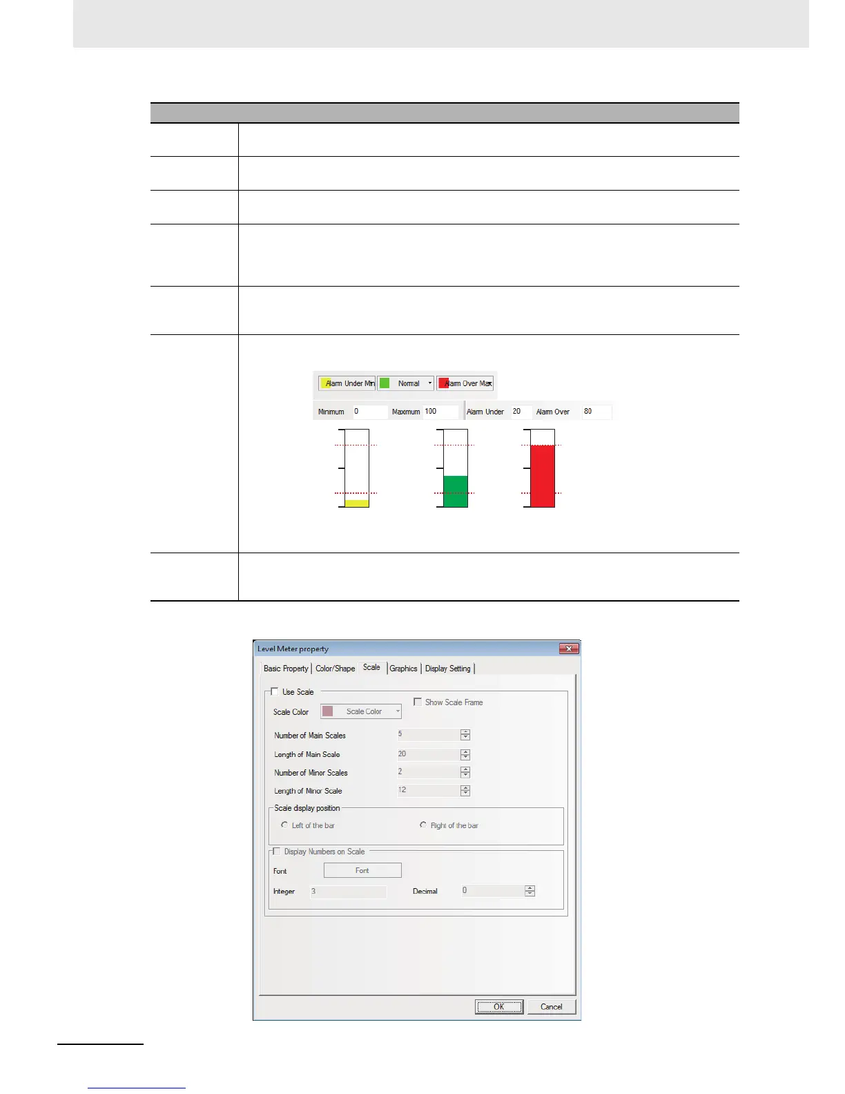 When the value of the specified memory falls below the set Alarm Lower, the filled area of the