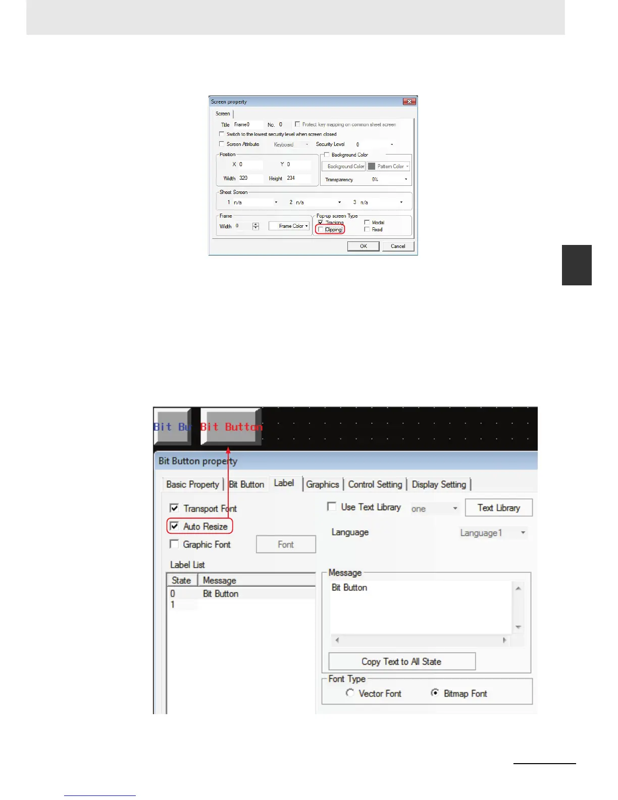 Note If the keyboard is called by the Pop-up Screen, [Clipping] in Pop-up Screen Type must not be checked, as