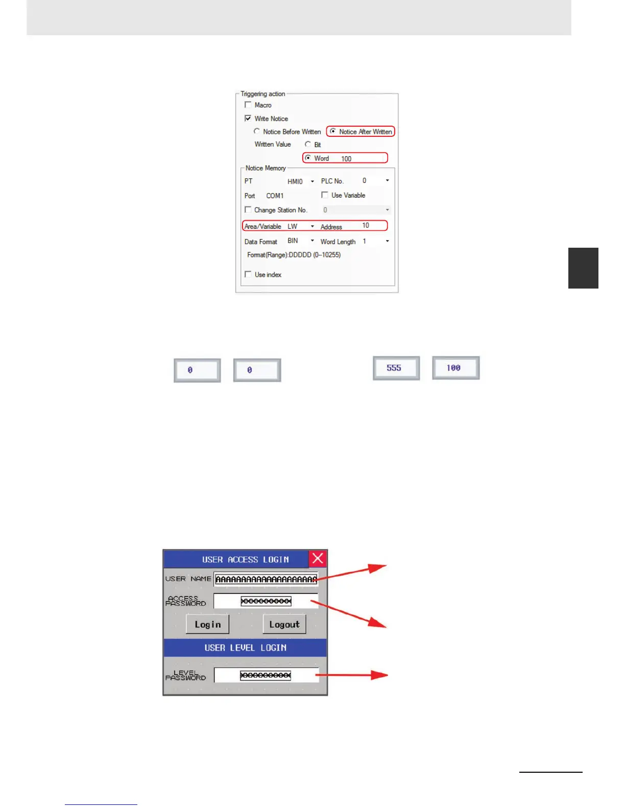 is used; and you can input the correct LEVEL PASSWORD in the USER LEVEL LOGIN screen
