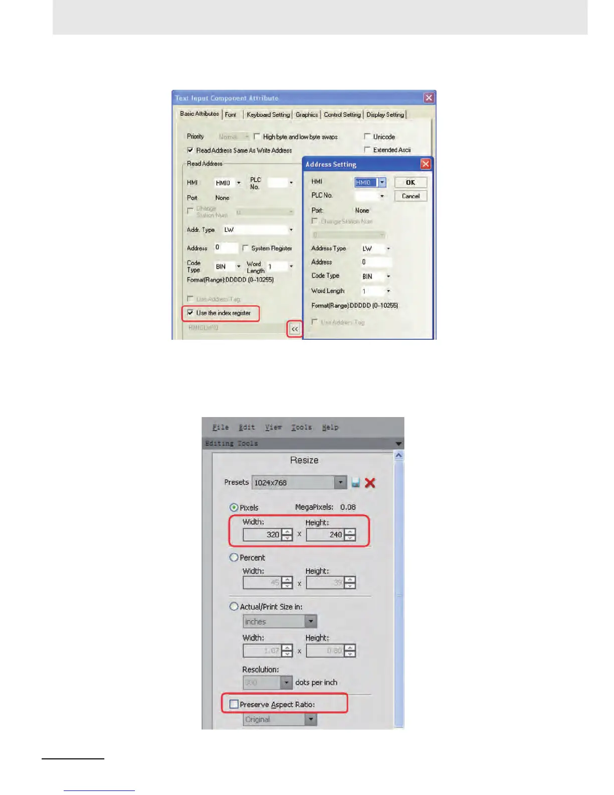 screen with a resolution of 800*480, use Image Software to set the width at 320 and the height