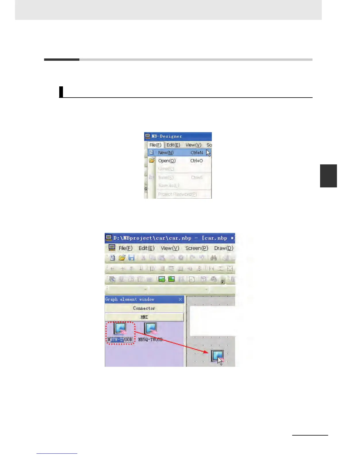 Select [NB7W-TW00B] from [HMI] Element Library, drag HMI to the design window after