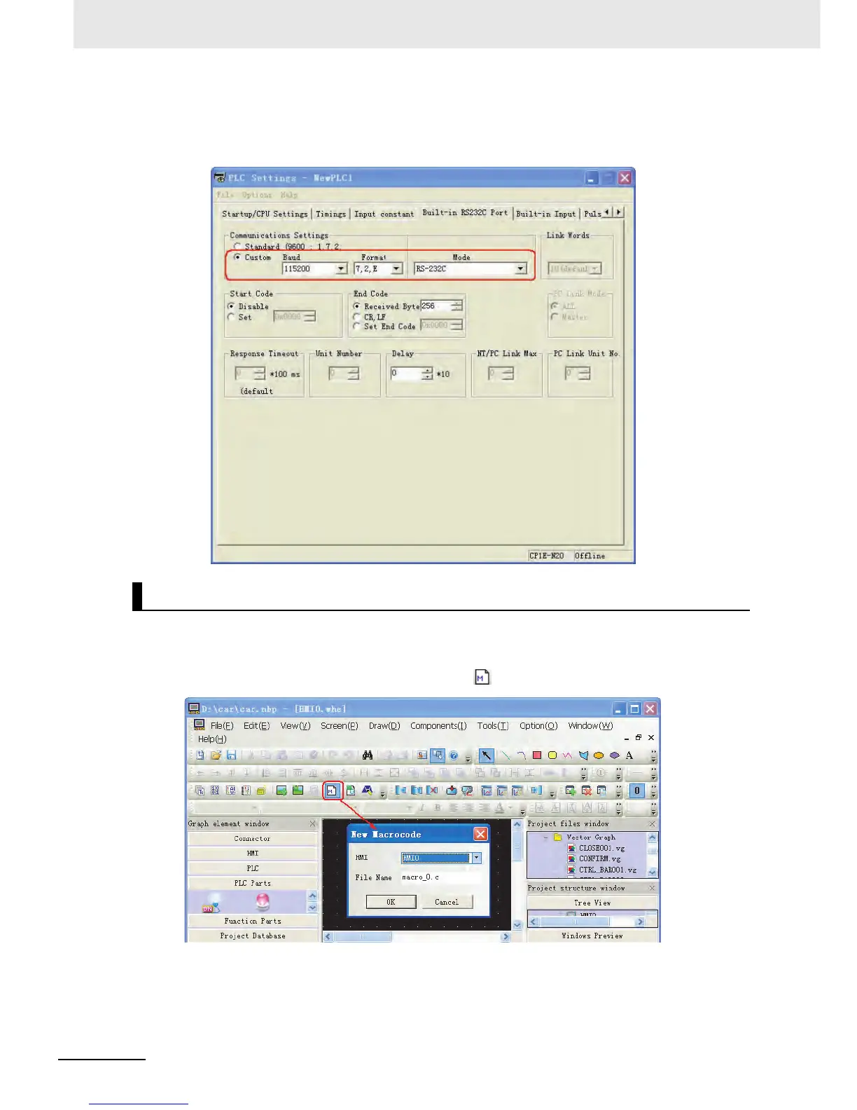 Settings]. Be sure to set the communication mode of PLC [Built-in RS232C Port] to “RS232C,