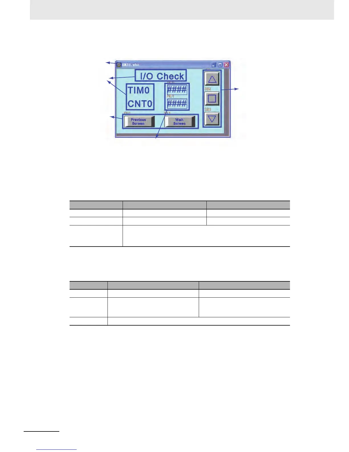 a Screen b Fixed Texts c Number Display components d Function Keys e Bit State Setting