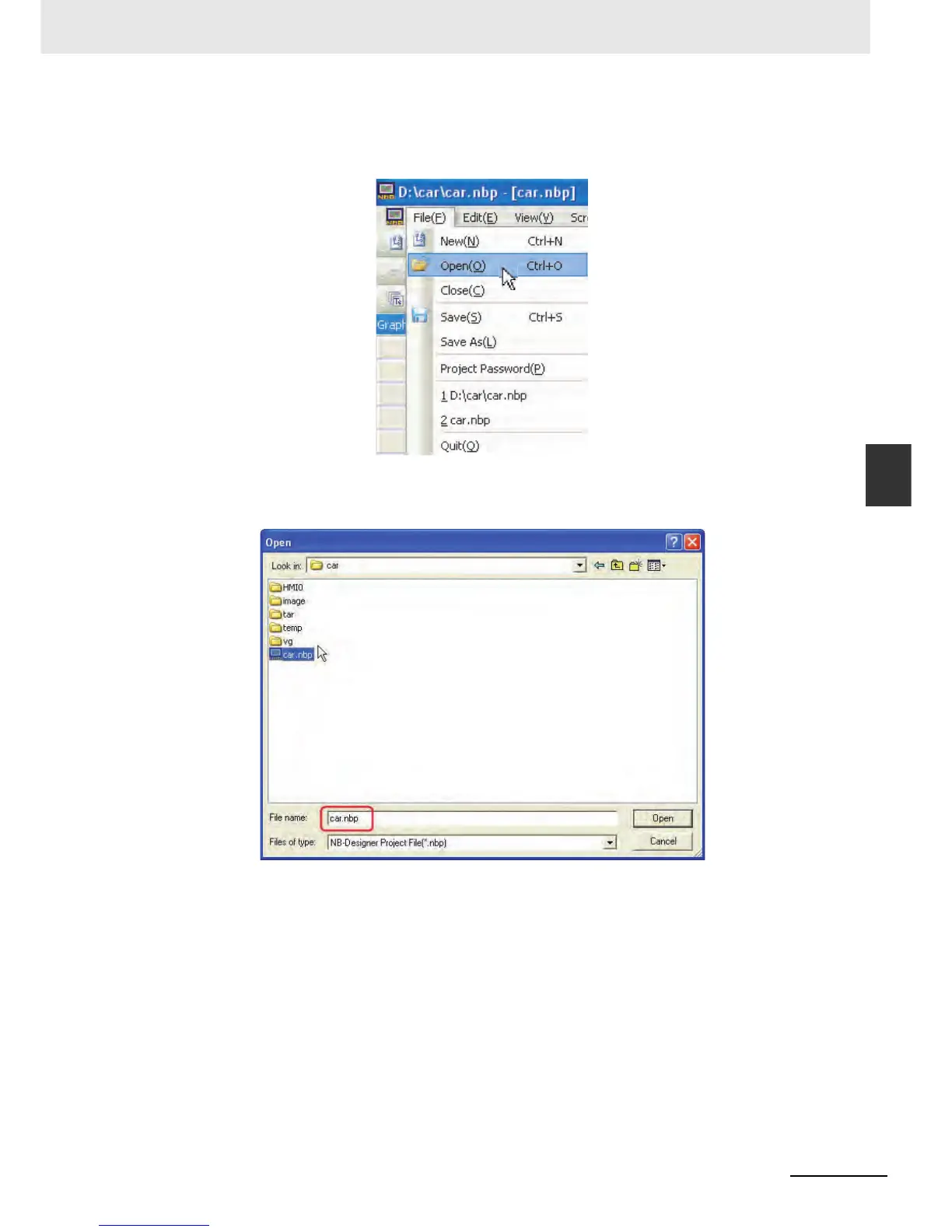 Designate the [Look in] location and select the file name. Single-click [Open]. Open the NB-