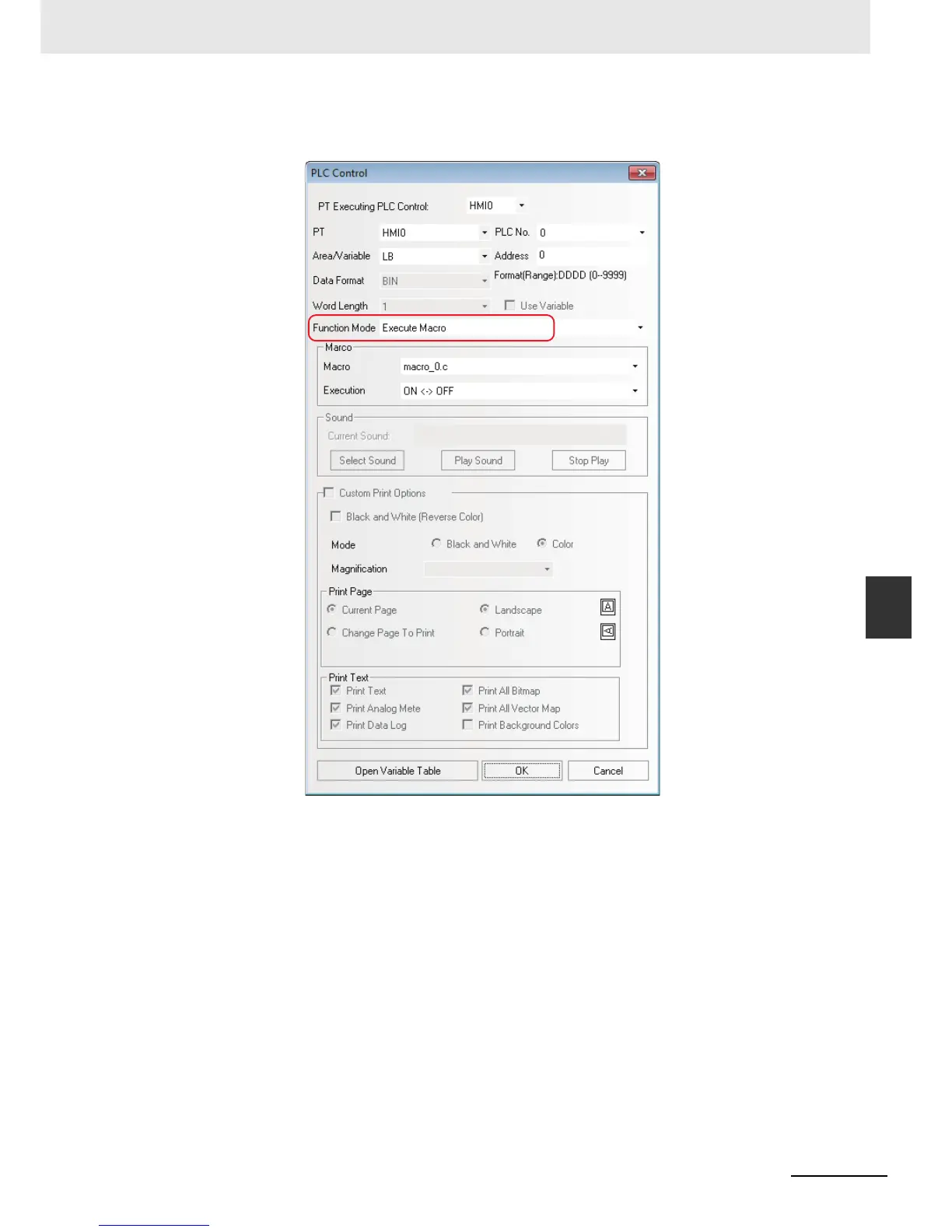 Method 4: [PLC Control] Æ [Execute Macro]: The execution of the macro is controlled by the