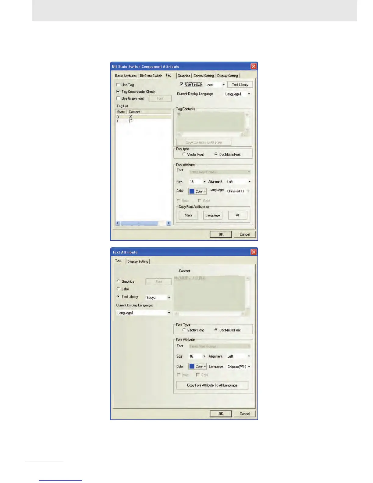 (b) Add a [Bit State Switch] and a static text on the screen, with the “Use TextLib” selected
