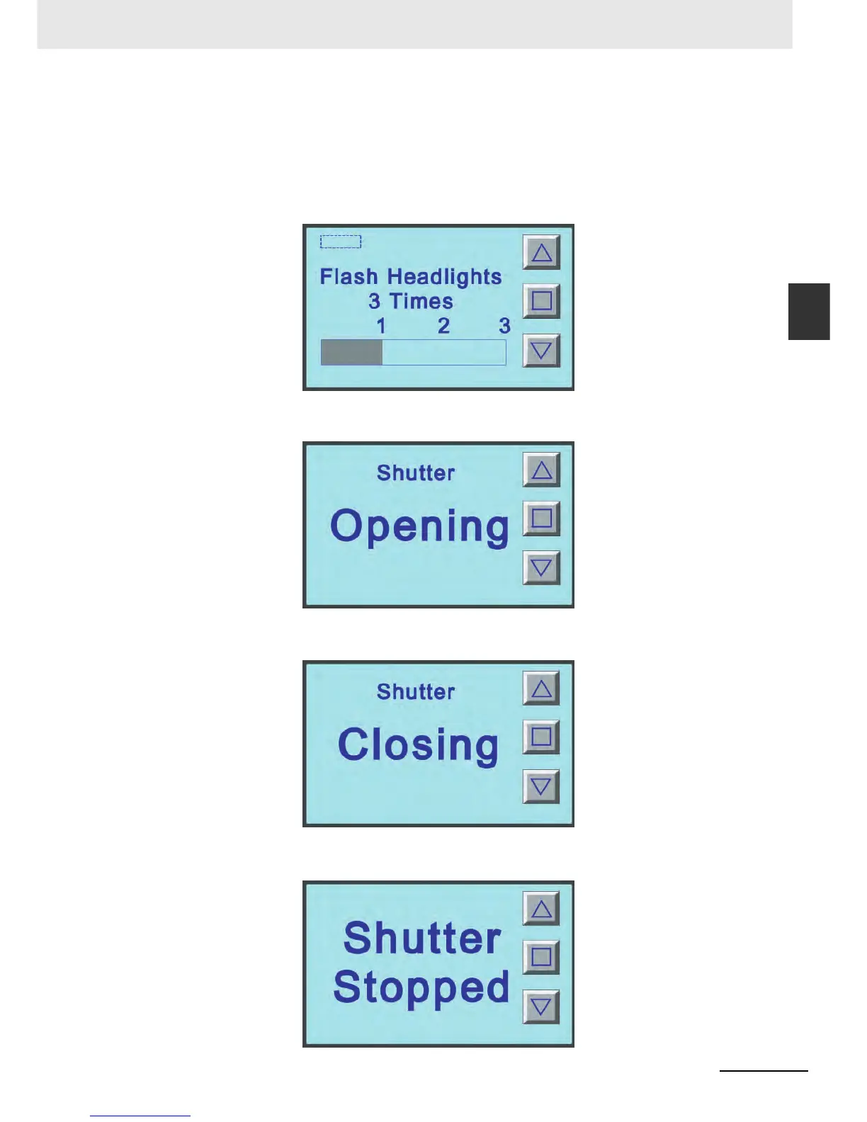 The screen will be displayed when the garage door is fully closed. The number of flash of