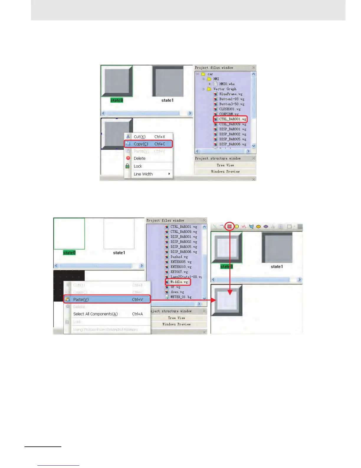 Then select “Middle.vg” graphics, and copy the graphics to be copied into it. Copy the “state1”