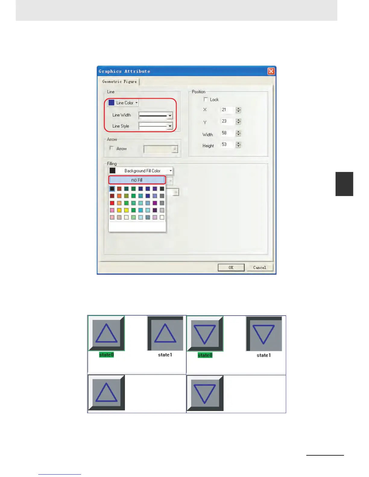 Then make the settings in the “Graphics Attribute” dialog box to the geometric figures, as shown