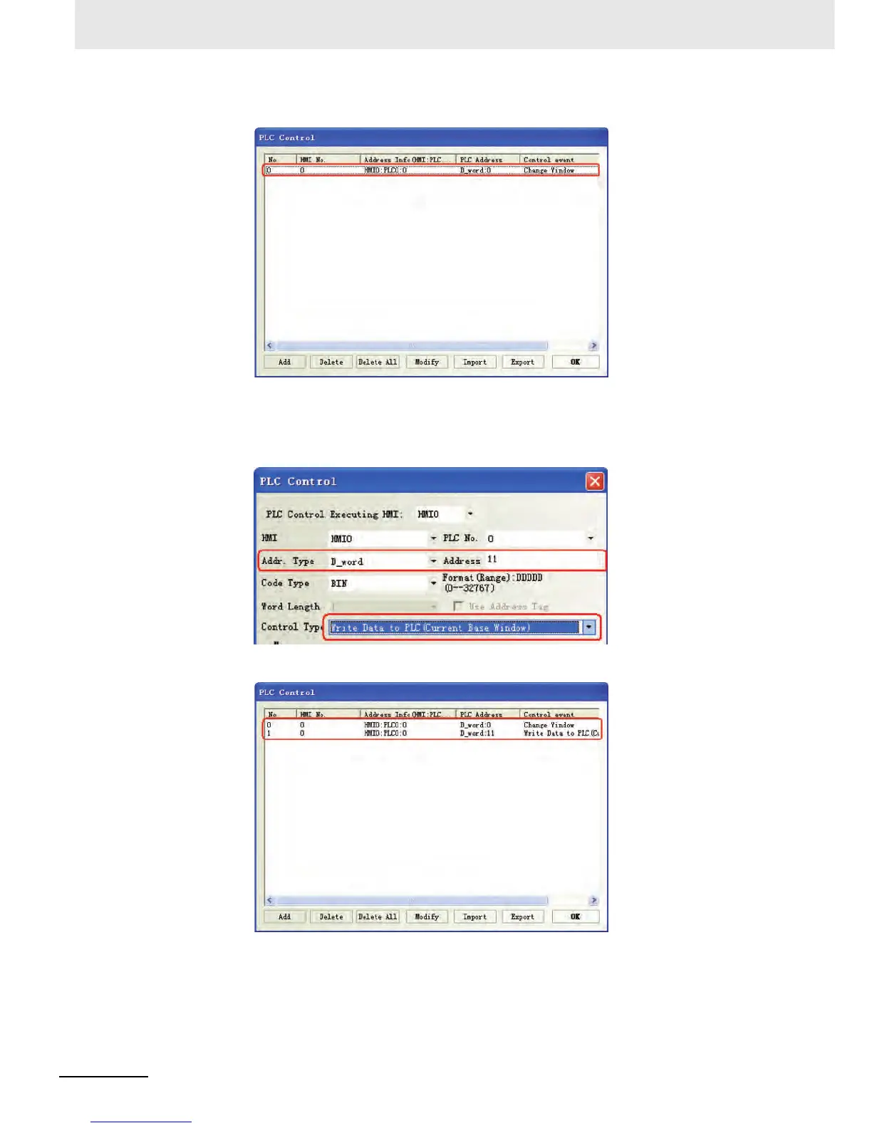 Refer to 3-8-5 PLC Control of NB-Designer Operation Manual for details on PLC control.