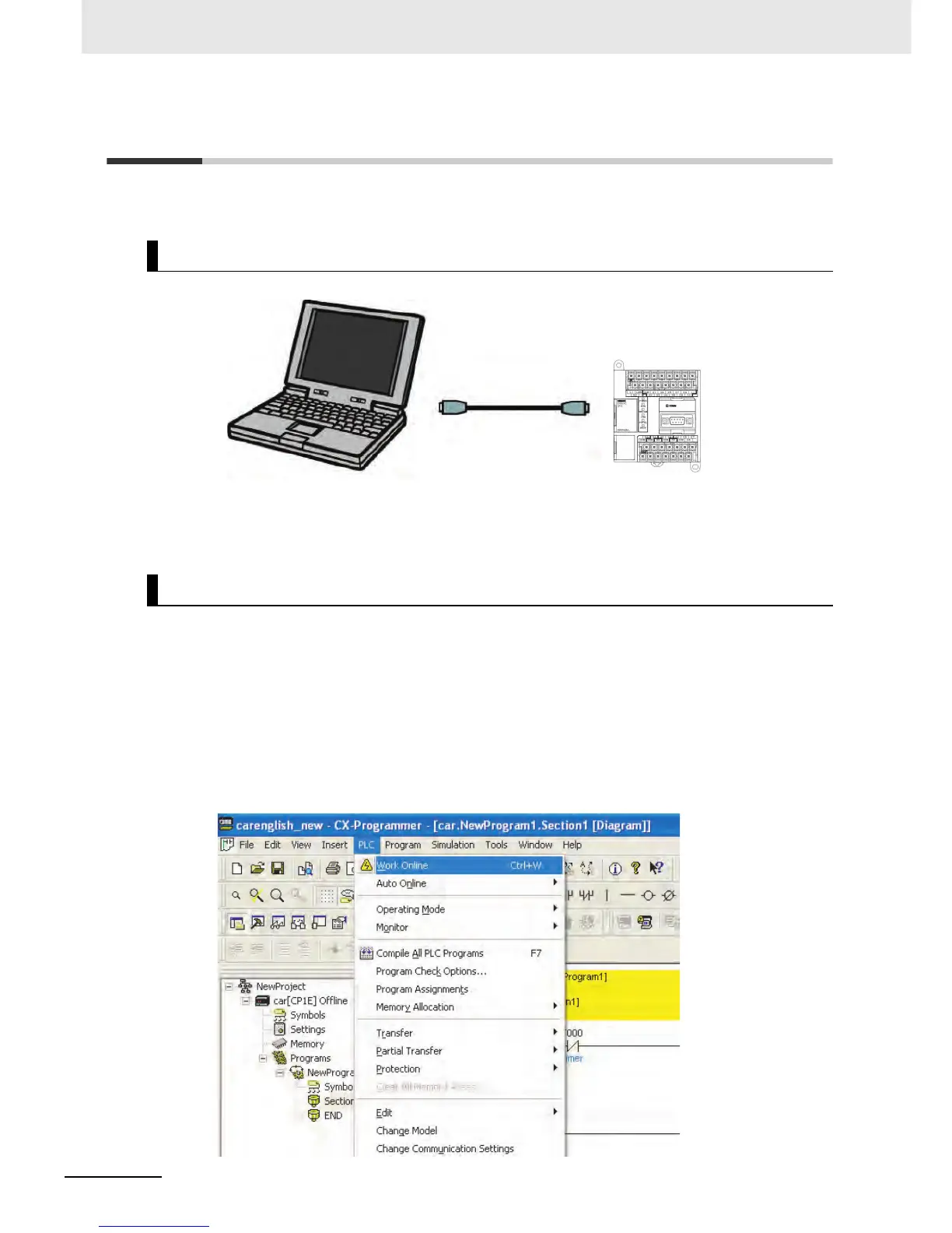 Select [PLC]-[Work Online] from the main menu of CX-Programmer.