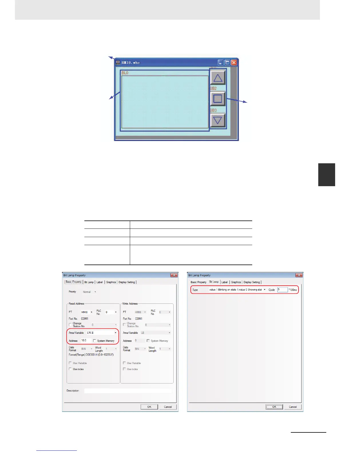 The configuration of the Bit Lamp is shown below. The creating method of the Bit Button components is