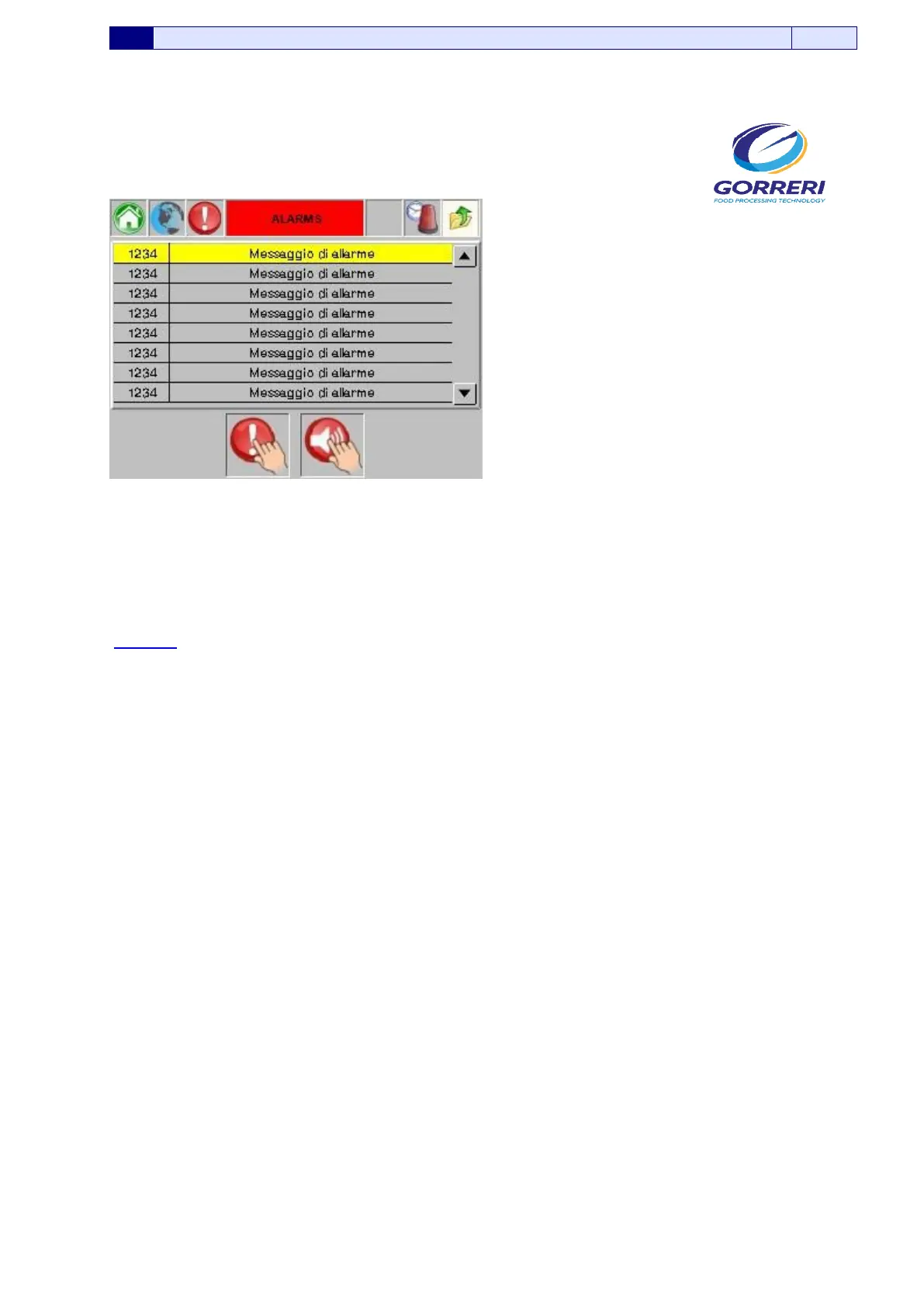 Information indicated in the Alarms Page are carefully explained as follows: