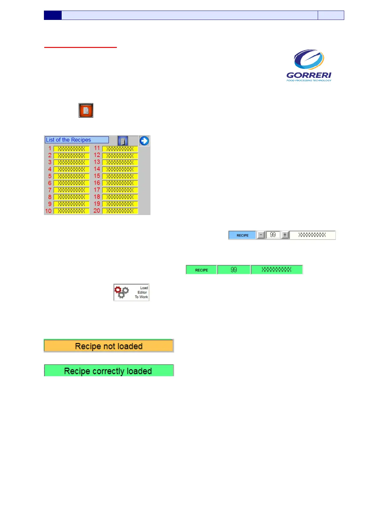 Once the recipe is selected in the field “RECIPES EDITOR ”