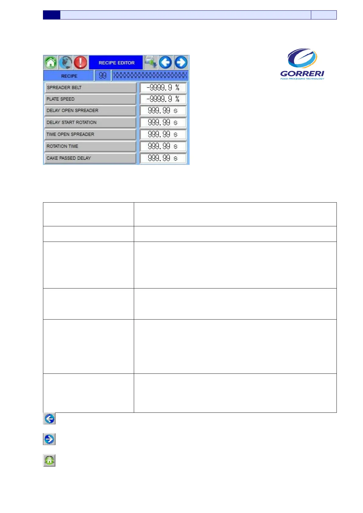 Information indicated in the Recipe Editor page, are carefully explained as follows: