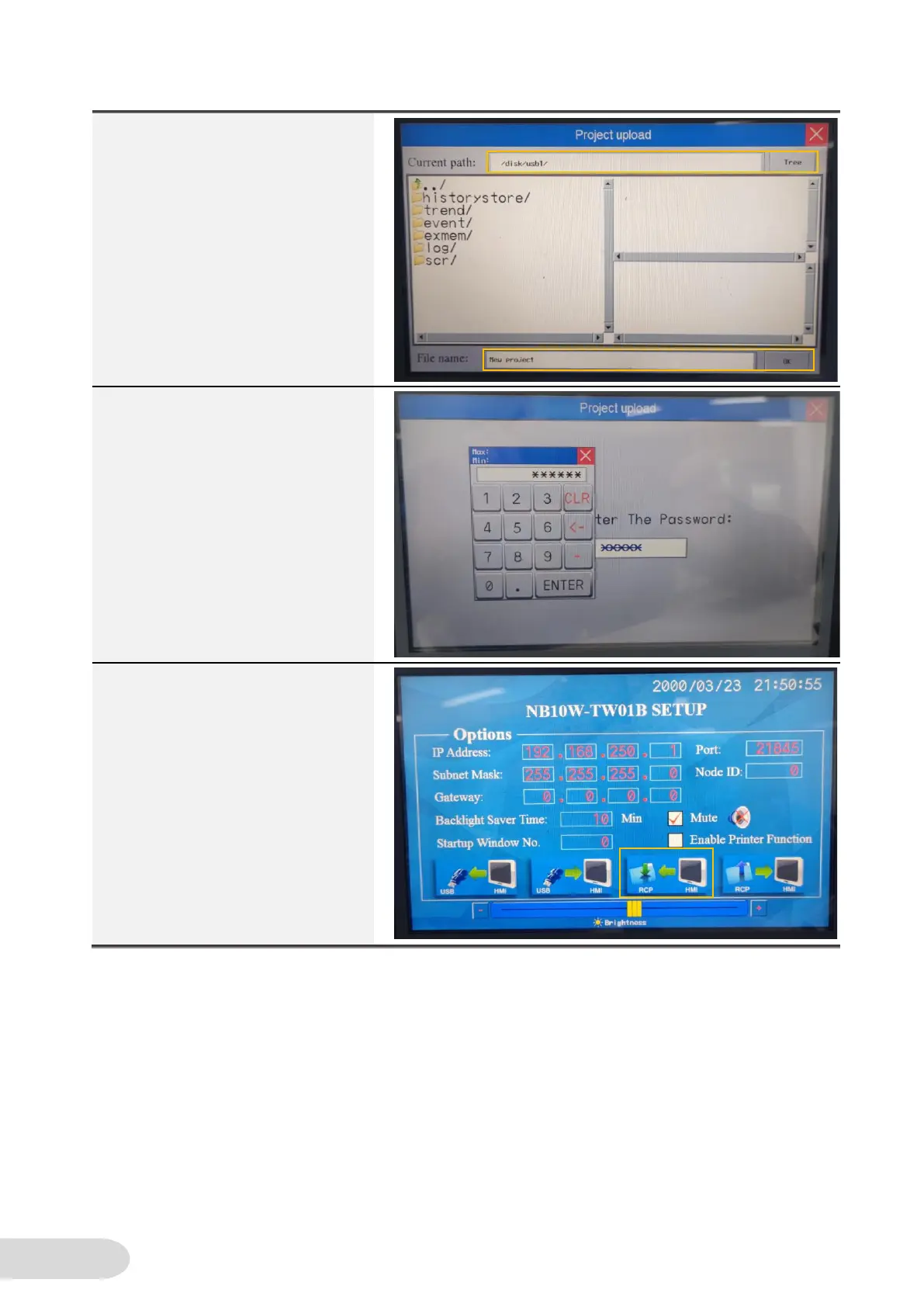 6. Touch the RCPHMI button.