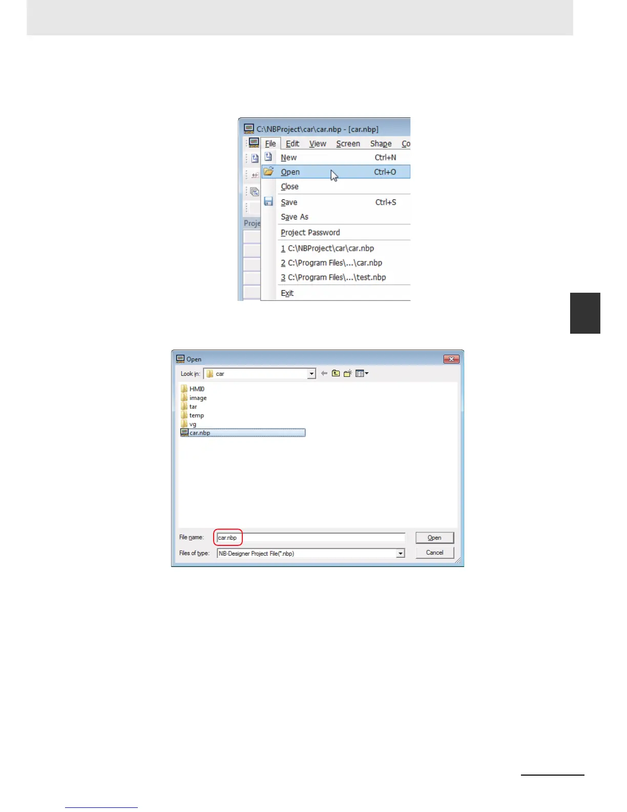 Designate the [Look in] location and select the file name. Single-click [Open]. Open the NB-