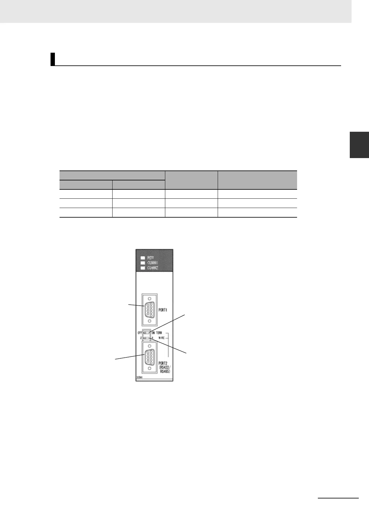For CS1W-SCB41 type (Port 1 is RS-232C port and Port 2 is RS-422A/485 port.)