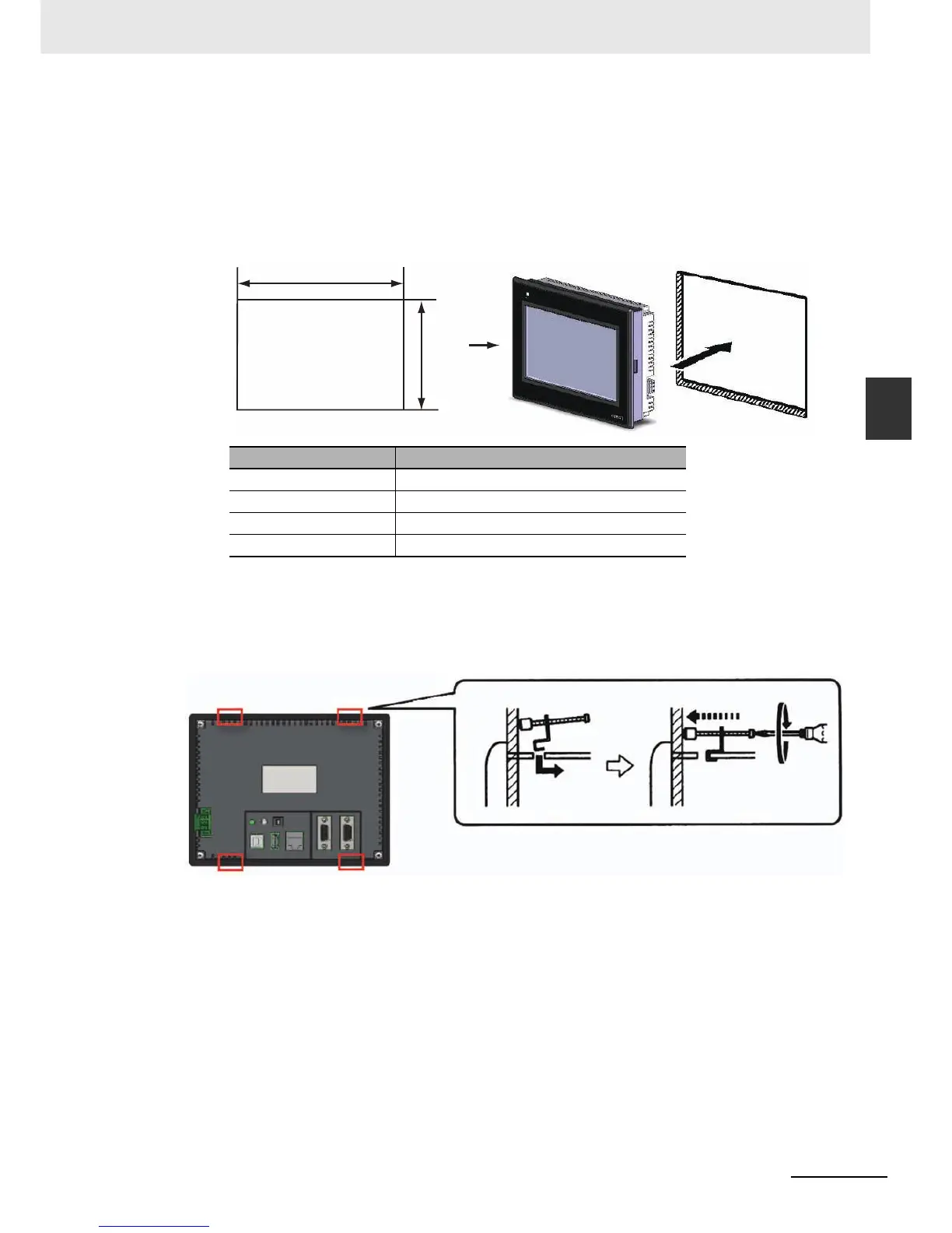 Panel cutout with dimensions is shown below. Fit the NB Unit into the panel from the front side.