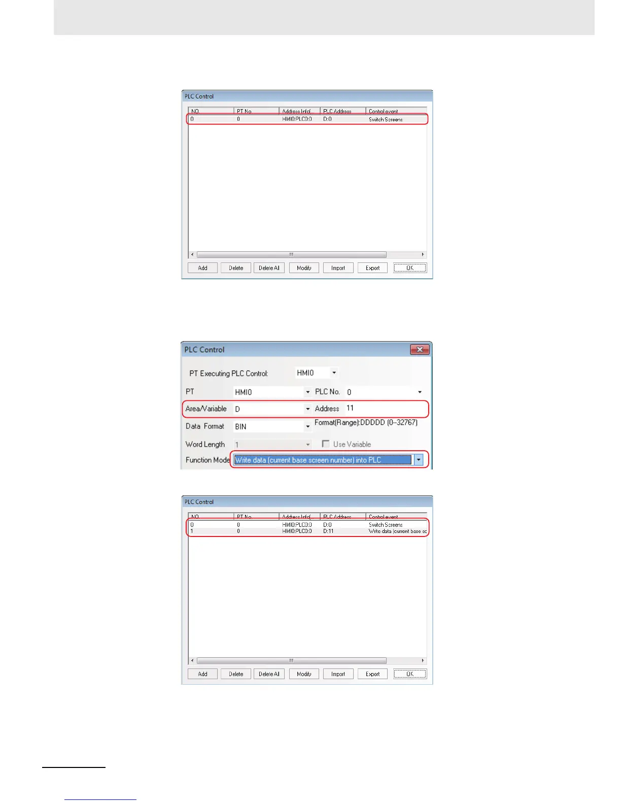 Add a control event which outputs the number of Current Base Screen from the PT to the PLC in the